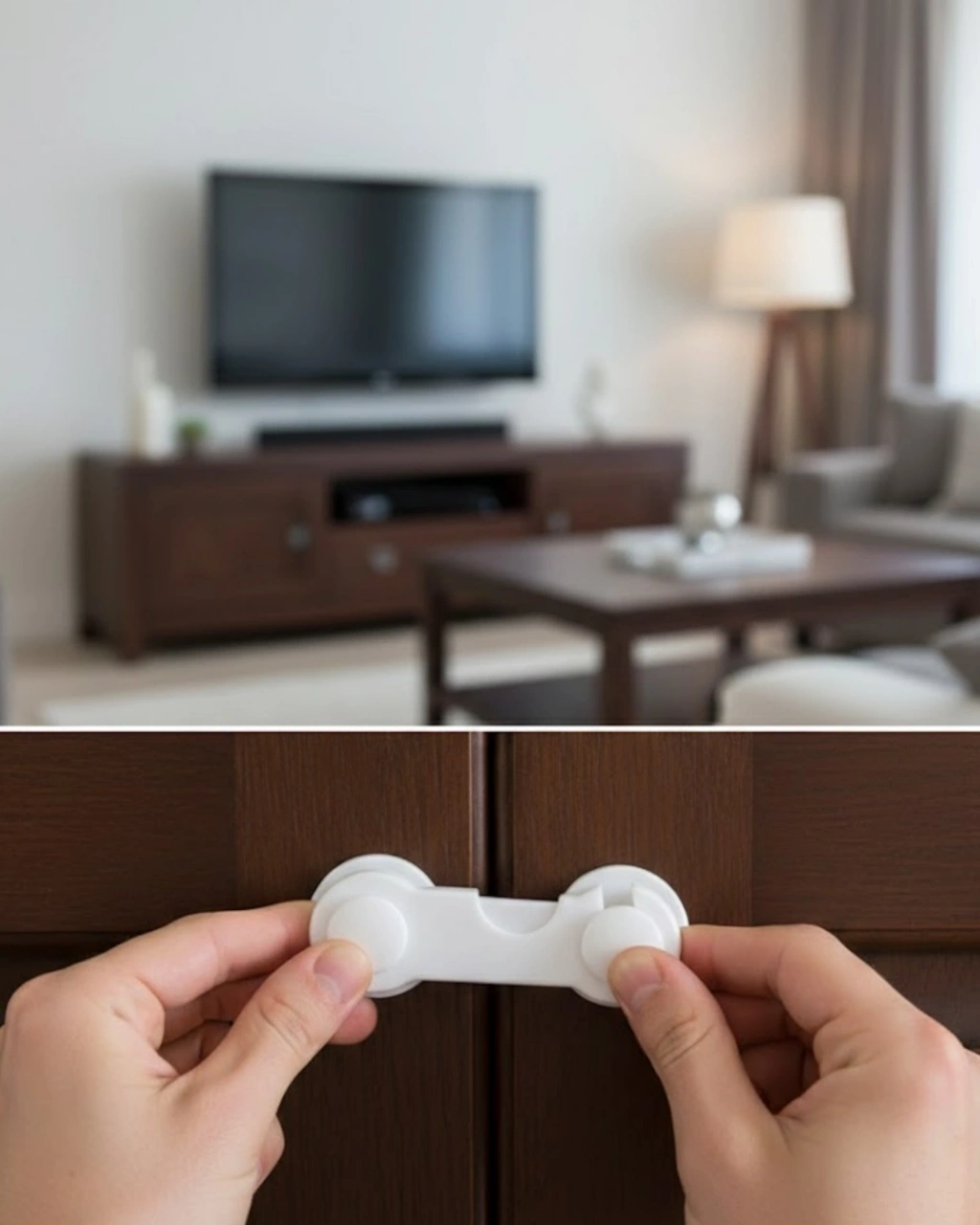 Çocukların dolap ve çekmeceleri açmasını önlemek aıyla üretilen 4 adet dolap güvenlik kilidi, evde güvenli alanlar oluşturur. Vida ve matkap gerektirmeyen yapışkanlı sistemi sayesinde kolayca monte edilir. Sağlam yapısı uzun süreli kullanım sağlar.Keskin kenar içermeyen tasarımı çocuklar için güvenlidir. Farklı yüzeylerde kullanılabilen yapısı ile çok amaçlı kullanım sunar. Sade görünümü sayesinde ev dekorasyonuna uyum sağlar.Ebeveynler için pratik, çocuklar için güvenli bir çözümdür.