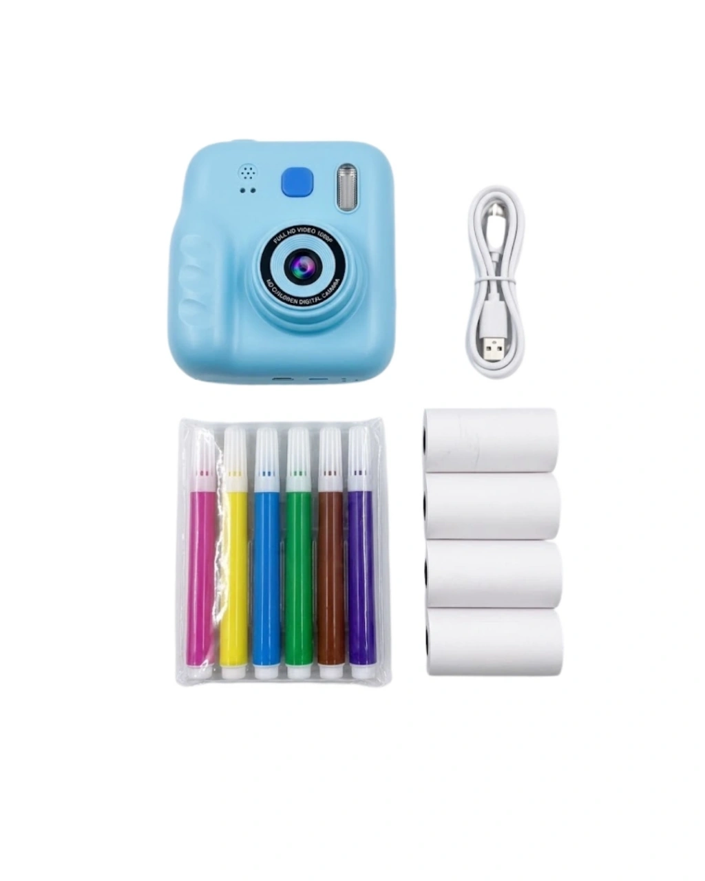 Çocuklar için özel olarak geliştirilen bu anında baskı özellikli kamera, eğlenceyi ve öğrenmeyi bir araya getiren eşsiz bir üründür. Çocukların yaratıcılığını destekleyen bu cihaz, onların kendi dünyalarını keşfetmelerine olanak tanırken aynı zamanda teknoloji ile sağlıklı bir bağ kurmalarını sağlar. Kullanımı oldukça basit olan bu kamera ile çocuklar tek tuşla fotoğraf çekebilir, video kaydı yapabilir ve çektikleri anları saniyeler içinde çıktı olarak alabilirler.Ürünün en dikkat çekici özelliği anında baskı teknolojisidir. Çocuklar çektikleri fotoğrafları beklemeden basabilir ve bu sayede somut hatıralar oluşturabilir. Bu özellik özellikle çocukların ilgisini artırır ve ürünü daha uzun süre keyifle kullanmalarını sağlar. Ayrıca kamera yalnızca fotoğraf çekmekle kalmaz, video kaydı özelliği ile çocukların eğlenceli anlarını kayıt altına almalarına da imkan tanır. Ürün ile birlikte gelen 4 adet baskı kağıdı rulosu ve 5 adet renkli kalem sayesinde çocuklar bastıkları fotoğrafları boyayabilir ve tamamen kendi tarzlarını yansıtabilir. Bu özellik ürünü sadece bir kamera olmaktan çıkarıp aynı zamanda eğitici bir aktivite setine dönüştürür.Ergonomik ve hafif tasarımı sayesinde çocukların rahatlıkla kullanabileceği şekilde üretilmiştir. Dayanıklı yapısı ile uzun süreli kullanım sunar. Evde, okulda, parkta veya seyahatte rahatlıkla kullanılabilir.Bu ürün, çocukların hayal gücünü geliştiren, onları üretmeye teşvik eden ve aynı zamanda eğlenceli vakit geçirmelerini sağlayan mükemmel bir hediyedir.