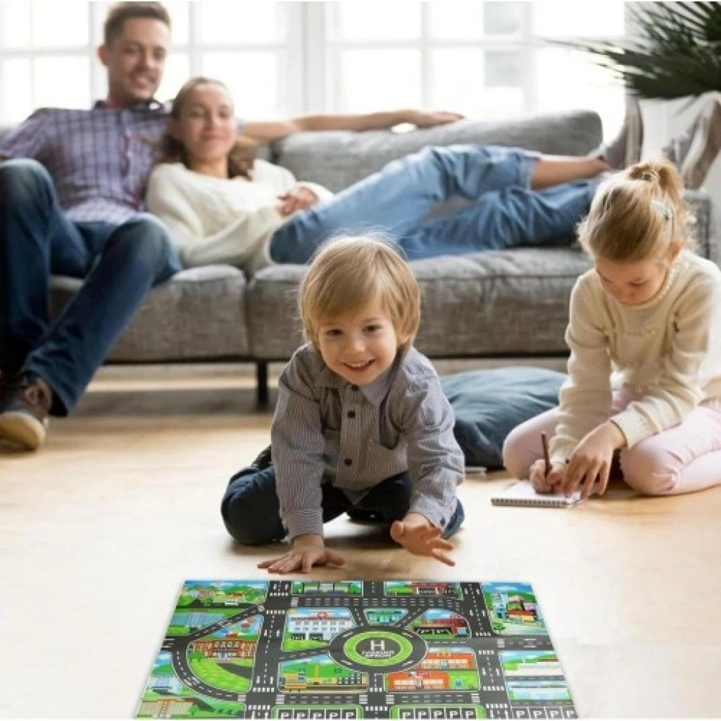 Çocuk Oyun Matı (Mutlu Şehir Hayatı)Ürün AçıklamasıÇocuğunuzun odasını canlı ve hareketli bir şehre dönüştürün! Mutlu Şehir Hayatı Oyun Matı, miniklerin hayal güçlerini harekete geçiren, üzerinde yolların, binaların ve parkların bulunduğu devasa bir oyun alanıdır. Çocuklar en sevdikleri oyuncak arabalarıyla bu renkli yollarda maceralara atılırken, siz de onların yaratıcılıklarının gelişimini keyifle izleyeceksiniz. Hem eğlenceli bir oyun alanı hem de konforlu bir zemin sunan bu mat, çocuk odalarının yeni vazgeçilmezi olacak.Ürün ÖzellikleriCanlı Şehir Tasarımı: Renkli binalar, geniş yollar ve detaylı şehir manzarasıyla çocukların yol maceralarını daha gerçekçi ve ilginç hale getirir.Aile Bağlarını Güçlendirir: Ebeveyn-çocuk etkileşimine ilham veren tasarımıyla, aile üyeleri arasında iletişimi ve birlikte oyun oynama keyfini artırır.Pratik Depolama: Katlanabilir ve hafif yapısı sayesinde oyun bittiğinde saniyeler içinde toplanabilir. Yer kaplamadan dolapta veya yatak altında saklanabilir.Dayanıklı ve Sağlam: Yüksek kaliteli malzemesi, yoğun oyun temposuna ve sürtünmelere karşı dirençlidir, uzun ömürlü kullanım sunur.Geniş Kullanım Alanı: Oyun odaları, yatak odaları, kreşler ve anaokulları için uygundur; her türlü yaşam alanına anında neşe ve konfor katar.Kullanım AvantajlarıHayal Gücü Gelişimi: Çocukların kendi trafik kurallarını koymalarını, hikayeler yaratmalarını ve sosyal roller üzerine denemeler yapmalarını teşvik eder.Konforlu Oyun: Yumuşak dokusu sayesinde çocukların soğuk zeminle temasını keser, dizlerini ve ellerini koruyarak rahat bir oyun ortamı sağlar.Kolay Bakım: Leke tutmaya dirençli yüzeyi sayesinde nemli bir bezle kolayca silinebilir ve hijyenik tutulabilir.Taşınabilirlik: Hafif tasarımı ile sadece evde değil, piknikte, bahçede veya arkadaş ziyaretlerinde yanınızda götürebilirsiniz.Uygulama ve YerleşimMatı düz ve kuru bir zemine serin.Araba, figür ve oyuncak bebeklerle şehri canlandırmaya başlayın.Oyun bitiminde rulo yaparak veya katlayarak muhafaza edin.Teknik BilgilerTema: Şehir Hayatı ve Yol MacerasıMalzeme: Sağlığa zararsız, dayanıklı yumuşak dokulu yüzeyÖzellik: Katlanabilir, taşınabilir ve yıkanabilir/silinebilir.Paket İçeriği1 Adet Mutlu Şehir Hayatı Çocuk Oyun Matı