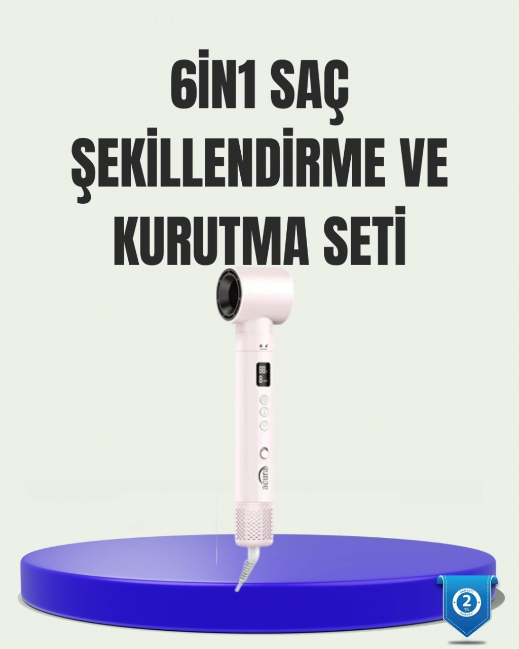 AC-95 Airstyle 6-in-1 Saç Şekillendirme Seti, modern saç bakım ihtiyaçlarına yanıt veren çok yönlü ve güçlü bir çözüm sunar. Tek bir cihazla saç kurutma, düzleştirme, hacim verme ve bukle oluşturma işlemlerini kolayca gerçekleştirebilirsiniz. Gelişmiş hava akışı teknolojisi sayesinde saçlarınız yüksek ısıya uzun süre maruz kalmadan hızlıca şekillendirilir.Cihazın kalbinde yer alan 110.000 rpm yüksek hızlı motor, 62 m/sn hava akışı sağlayarak etkili ve dengeli bir performans sunar. Bu güçlü motor, saçın doğal nem dengesini korumaya yardımcı olurken aynı zamanda kurutma süresini ciddi ölçüde kısaltır. Günlük kullanımda zamandan tasarruf etmenizi sağlar.Negatif iyon teknolojisi, saç kütikülünü yumuşatarak saçın daha parlak ve canlı görünmesine katkıda bulunur. Kurutma sırasında oluşan statik elektriği azaltır, saçların kabarmasını ve dolaşmasını engeller. Bu özellik özellikle elektriklenmeye yatkın saç tipleri için büyük avantaj sağlar.LCD ekranlı kontrol paneli sayesinde sıcaklık ve hız ayarlarını net bir şekilde görebilir, ihtiyacınıza göre anında değişiklik yapabilirsiniz. 3 kademeli sıcaklık ve hız ayarı, her saç tipi için ideal kombinasyonu oluşturmanıza olanak tanır. Akıllı sıcaklık kontrol sistemi, ısıyı sürekli izleyerek saç sağlığını korur.Set içerisinde bulunan farklı başlıklar, kullanıcıya maksimum esneklik sunar. Bukle başlıkları doğal dalgalar oluştururken, düzleştirme fırçası pürüzsüz sonuçlar sağlar. Hacimlendirici fırça ise saç diplerinden itibaren dolgun bir görünüm kazandırır.Hafif ve ergonomik tasarımı sayesinde uzun süreli kullanımlarda bile konfor sağlar. Soğuk üfleme fonksiyonu ile saç şekli sabitlenir ve gün boyu kalıcılık elde edilir. 2 yıl garanti güvencesiyle sunulan bu set, evde profesyonel saç şekillendirme isteyenler için ideal bir tercihtir.