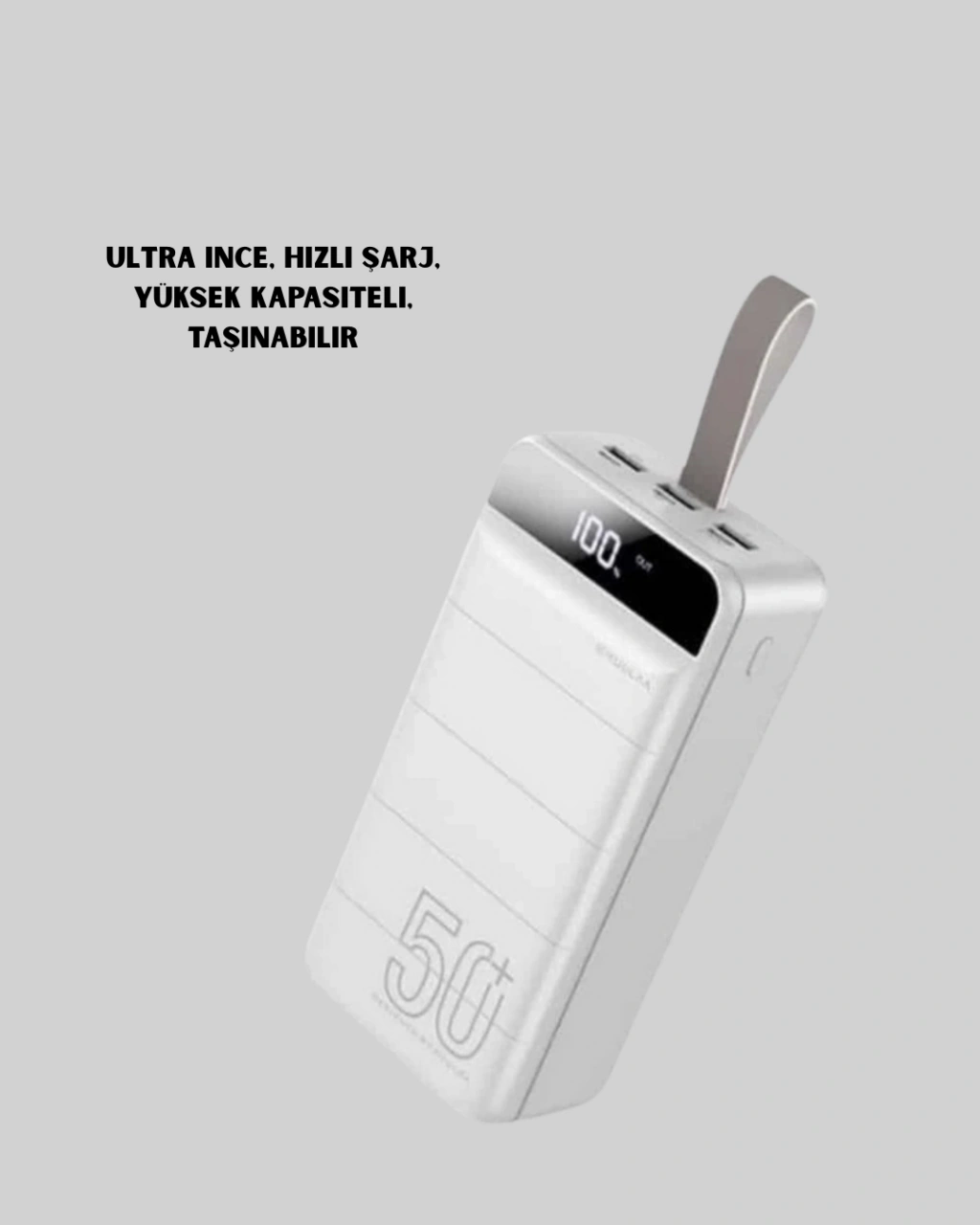 Bu taşınabilir şarj cihazı, günlük yaşamda ve seyahatlerde maksimum performans arayan kullanıcılar için ideal bir tercihtir. 50000mAh kapasiteli pili sayesinde tek şarjla birçok cihazı birden fazla kez şarj edebilirsiniz. Yeni nesil PD 22.5W çıkış sayesinde cihazlarınızı en kısa sürede şarj eder.Micro USB, Lightning ve Type-C giriş portları ile farklı kablo tipleri ile uyumludur. Dört adet çıkış portu aynı anda çoklu cihaz şarjını destekler. LED kamp lambası gece acil durumlar için idealdir.Gelişmiş devre koruma teknolojisi ile donatılmış olan bu cihaz, aşırı yüklenme, kısa devre ve sıcaklık artışlarına karşı tam koruma sağlar. Kompakt yapısı sayesinde sırt çantasında veya araçta kolay taşınabilir.
