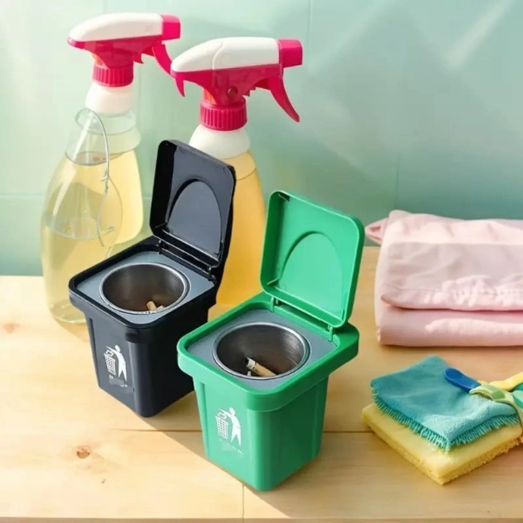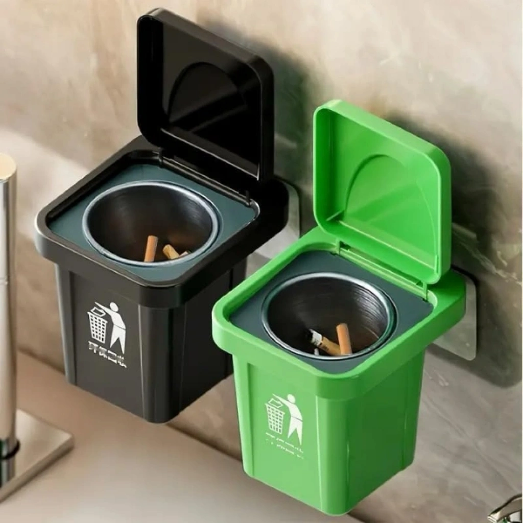 ÇÖP KUTUSU TASARIMLI DUVAR KÜLLÜĞÜ Ürün ÖzellikleriSıradan küllük tasarımlarını unutun! Çöp Kutusu Tasarımlı Duvar Küllüğü, eğlenceli minyatür çöp kutusu formuyla hem mekanınıza dekoratif bir hava katar hem de kullanım kolaylığı sağlar. Duvara monte edilebilir yapısı sayesinde balkon, teras, banyo veya ofis gibi alanlarda yer kaplamadan pratik bir kullanım sunar. İç kısmında yer alan çıkartılabilir paslanmaz metal hazne, temizlik işlemini saniyeler içinde halletmenizi sağlar ve koku oluşumunu minimize eder. Kapaklı tasarımı sayesinde rüzgardan etkilenmez ve küllerin çevreye dağılmasını engeller. Dayanıklı plastik gövdesi ve şık duruşuyla görseldeki siyah veya yeşil renk seçeneklerinden biri karışık gönderilir. Güçlü yapışkanlı montaj aparatı ile yüzeye zarar vermeden kolayca sabitlenebilir.Ürün Teknik ÖzellikleriÖzellikAçıklamaTasarımMinyatür Çöp Kutusu FormuMontaj TipiDuvara Monte (Yapışkanlı Aparat Dahil)MalzemeKaliteli Plastik Gövde & Paslanmaz Metal İç HazneKapak SistemiKoku ve Kül Dağılımını Engelleyen Kapaklı YapıRenk SeçenekleriSiyah veya Yeşil (Karışık gönderilir)Kullanım AlanıBalkon, Ofis, Banyo, Kafe ve RestoranlarPaket İçeriği1 Adet Çöp Kutusu Tasarımlı Duvar Küllüğü