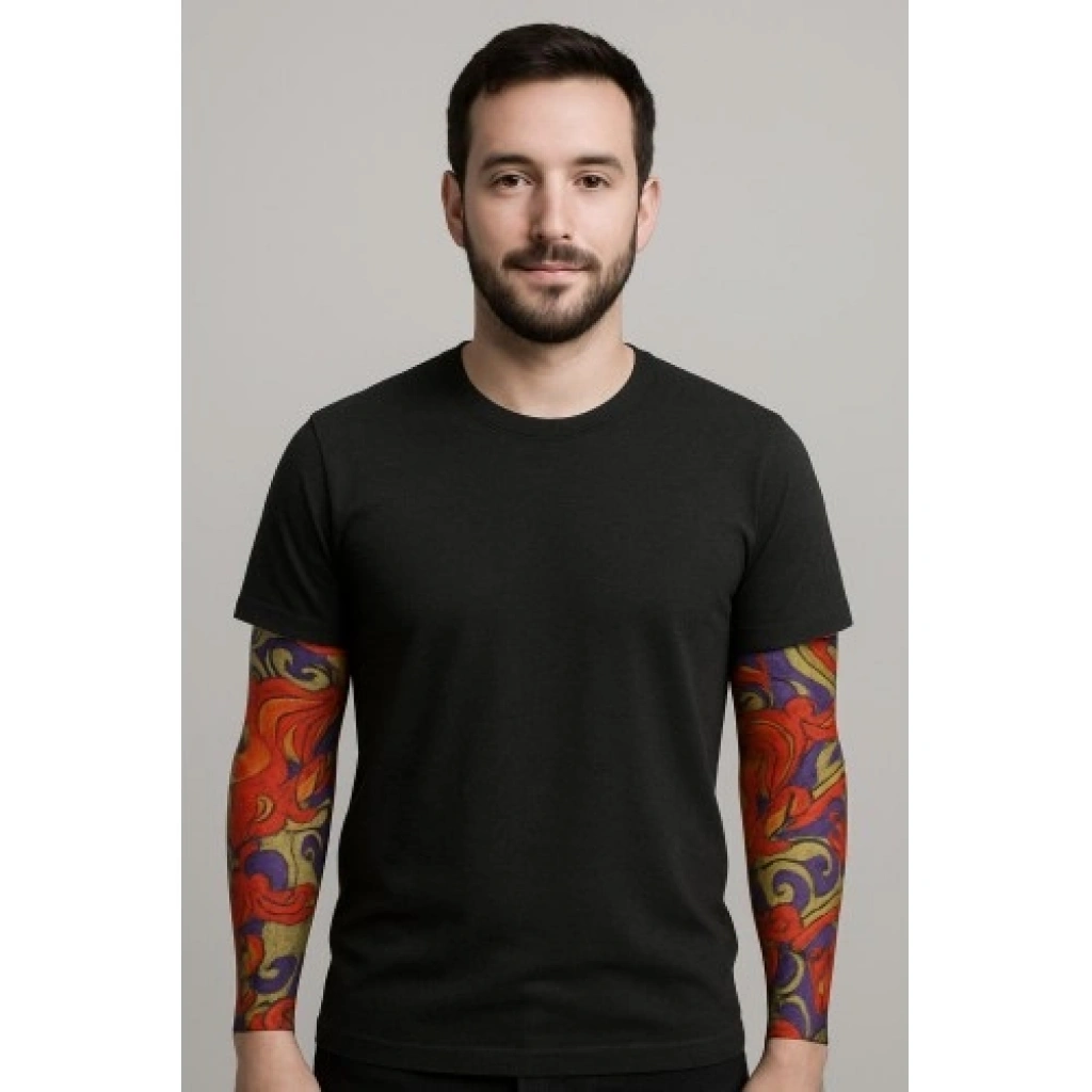 Giyilebilir Dövme Kol Çorabı – Likralı & Gerçekçi (2 Adet – Model 4)Tarzınızı saniyeler içinde baştan yaratın! Giyilebilir Dövme Kol Çorabı (Model 4), gerçek dövme mürekkebi tonlarındaki özel desenleri ve cildinizle bütünleşen ince dokusuyla kusursuz bir illüzyon yaratır. İster bir motosiklet sürüşünde, ister bir partide ya da sadece günlük stilinize heyecan katmak istediğinizde; bu esnek dövme kılıfı sizi her ortamda odak noktası yapacak.Öne Çıkan Özellikler ve Kullanım AvantajlarıUltra Gerçekçi Dövme Efekti: Model 4'e özel detaylı işleme ve gölgelendirmeler, kumaşın ince yapısıyla birleştiğinde dışarıdan bakıldığında gerçek bir dövmeden ayırt edilemez.Yüksek Kaliteli Likralı Kumaş: Esnek ve nefes alabilen yapısı sayesinde kolu (veya bacağı) tamamen sarar. Potluk yapmaz, kaymaz ve gün boyu konfor sunar.Güneşten Koruma (UV): Tarz sunmasının yanı sıra, yaz aylarında kollarınızı güneşin zararlı ışınlarından ve rüzgardan koruyan bir bariyer görevi görür.Pratik ve Ekonomik: Kalıcı dövme maliyetine ve acısına katlanmadan, dilediğiniz zaman takıp dilediğiniz zaman çıkarabileceğiniz zahmetsiz bir aksesuardır.Unisex Tasarım: Hem erkekler hem de kadınlar için uygun ölçülerde üretilmiştir; 1 çift (sağ ve sol) olarak gönderilir.Neden Bu Dövme Çorabını Tercih Etmelisiniz?Değişken Tarz: Bugün tam kol dövmeli bir rock yıldızı gibi görünüp, yarın sade tarzınıza geri dönebilirsiniz.Cosplay ve Performans: Sahne sanatları, tiyatro, sinema çekimleri veya cosplay etkinlikleri için profesyonel bir makyaj hilesidir.Yıkanabilir ve Tekrar Kullanılabilir: Kaliteli dokuması sayesinde defalarca yıkayıp ilk günkü canlılığıyla kullanmaya devam edebilirsiniz.Kullanım AlanlarıMotosiklet ve Bisiklet Sürüşleri: Rüzgar koruyucu ve karizmatik bir süriş aksesuarı olarak.Kostüm Partileri ve Halloween: "Bad boy/girl" veya "Rockstar" konseptli kombinlerin ana parçası.Konser ve Festivaller: Müziğin ruhunu yansıtan iddialı bir aksesuar.Günlük Stil: Sıradan bir kısa kollu tişörtü anında ikonik bir görünüme kavuşturmak için.Teknik Özellikler TablosuÖzellikDetayModelModel 4 (Özel Desen)Paket İçeriği2 Adet (Sağ ve Sol İçin Uygun)Materyal%100 Esnek Likralı Naylon/SpandexUyumStandart (Her Kola Uygun Esneklik)BakımElde Yıkanabilir, Hızlı Kurur