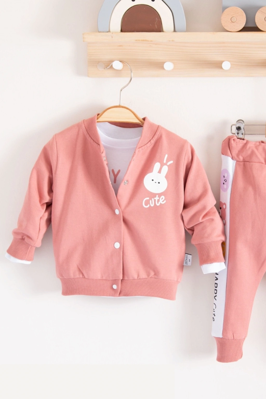 Cute Funny Desenli Kapişonlu Pamuklu 3'lü Kız Bebek Takımı