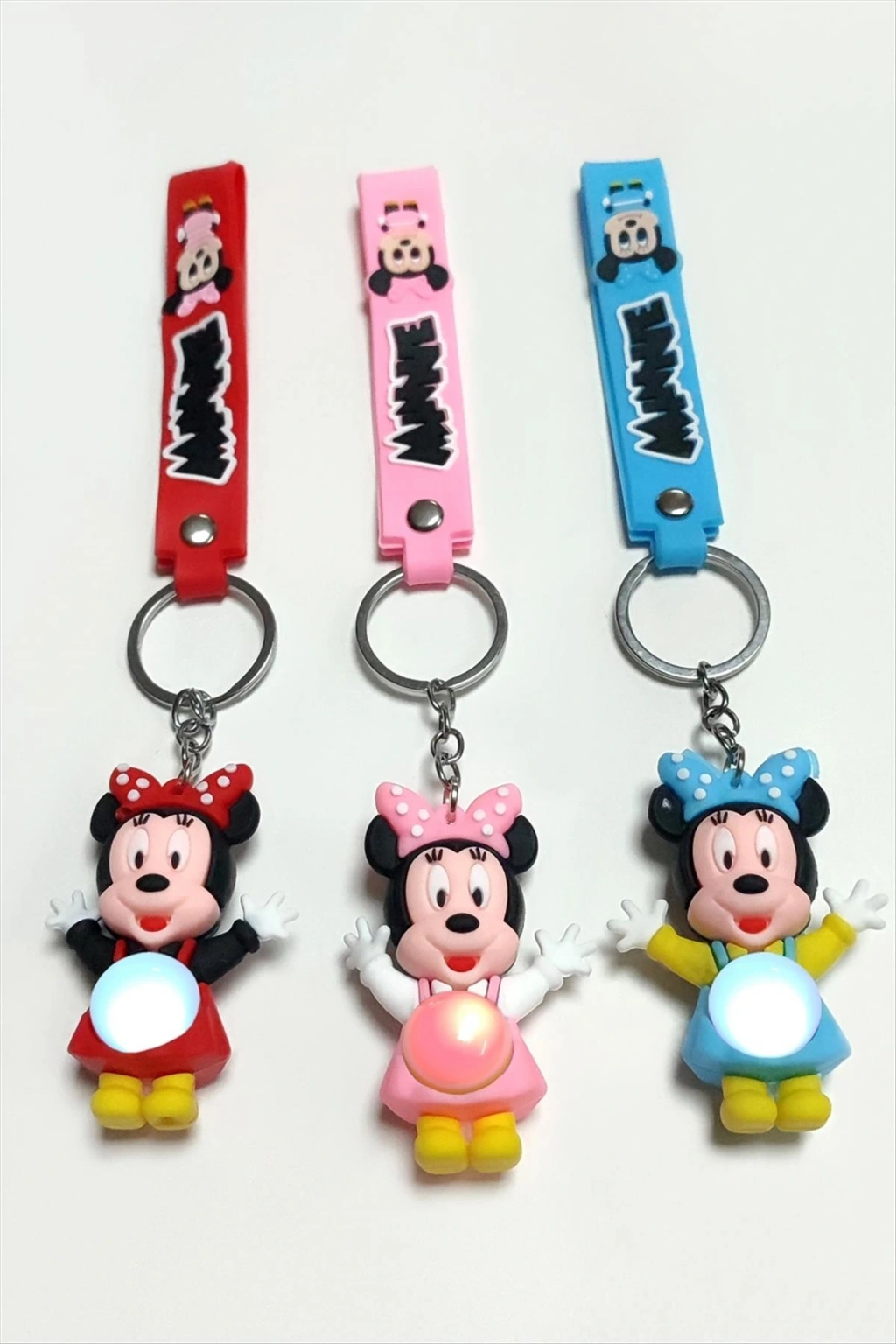 Anahtarlık; Ürün malzemesi silikon ve metaldir. Ürün boyu 18 cmdir. 1 sınıf kaliteli malzemeden üretilmiştir. Ürün ortasındaki yuvarlak beyaz bölgeye hafifçe vurarak renkli ışıklar yanmaktadır. Ürün renkleri ve modelleri asortilidir. Siparişlerinizde karışık olarak gönderilecektir.