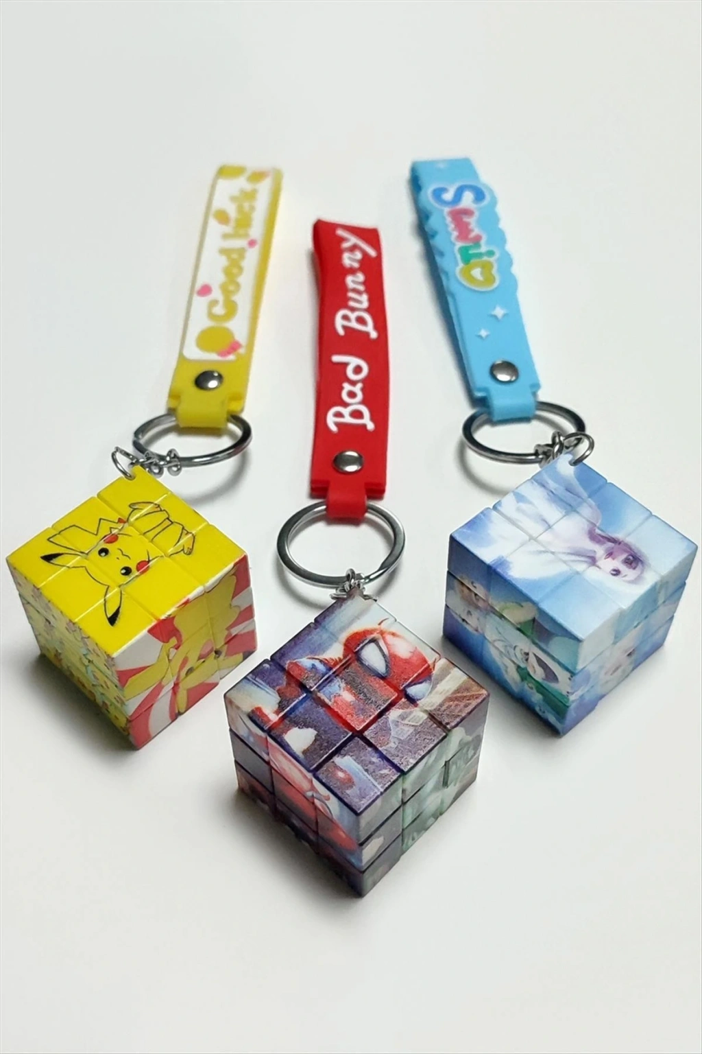 Anahtarlık; Ürün malzemesi plastik ve metaldir. Ürün boyu 12 cmdir. 1 sınıf kaliteli malzemeden üretilmiştir. Küp sağ sola dönmektedir.