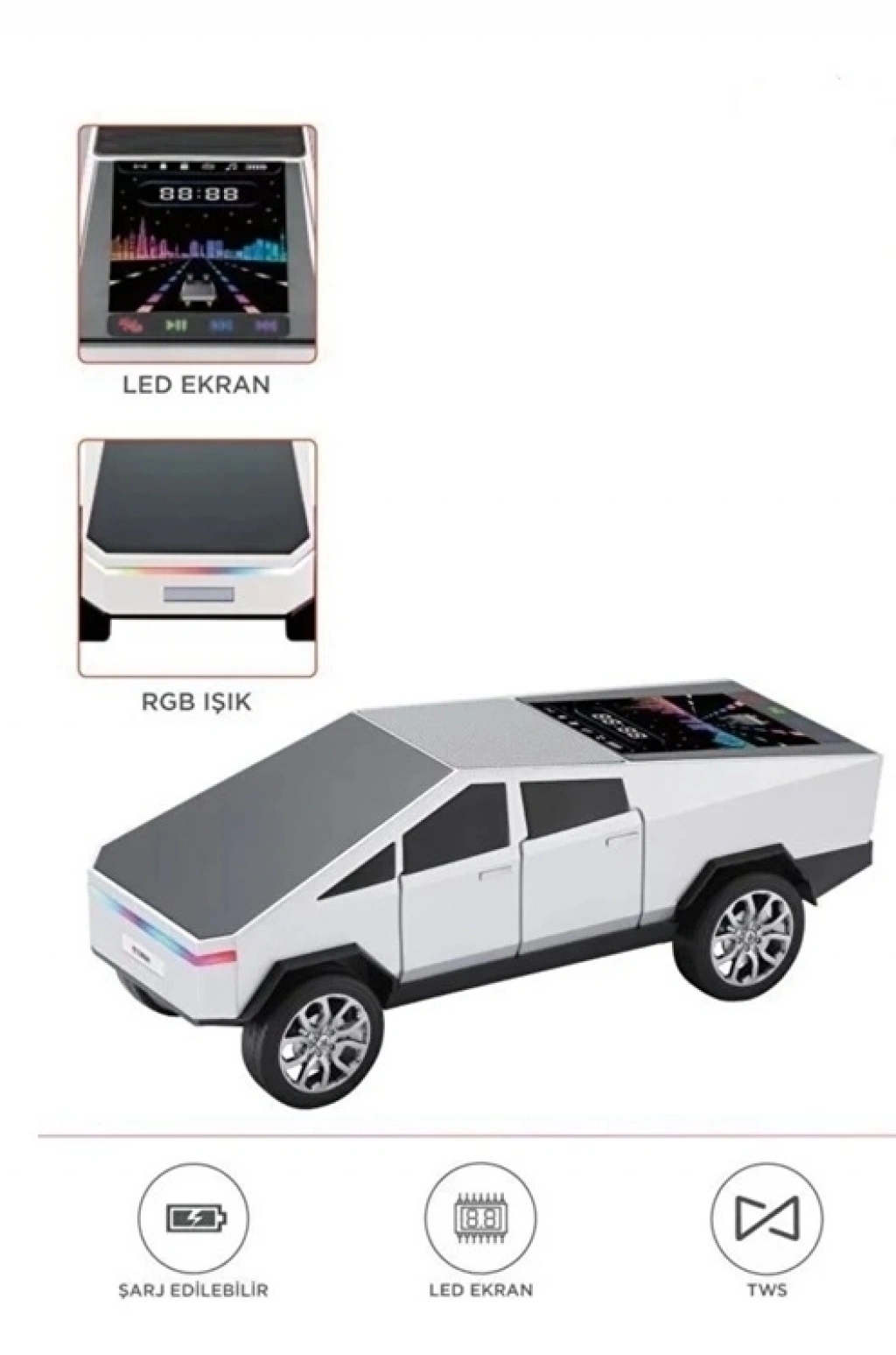 • D68 Cyber Model Araba Tasarımlı Bluetooth Hoparlör 15w Güçlü Ses Rgb Led /tws/usb Beyaz