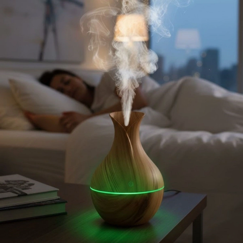 Damla Model Akasya Renk Hava Nemlendirici – Ultrasonik Soğuk Buhar Makinesi, LED Işıklı Masaüstü Oda Nemlendirici