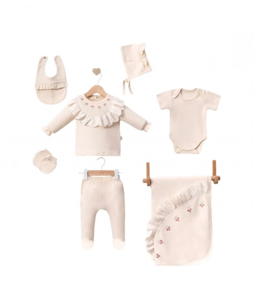 Dantel İşlemeli 10 Parça Yeni Doğan Hastane Seti %100 Pamuk