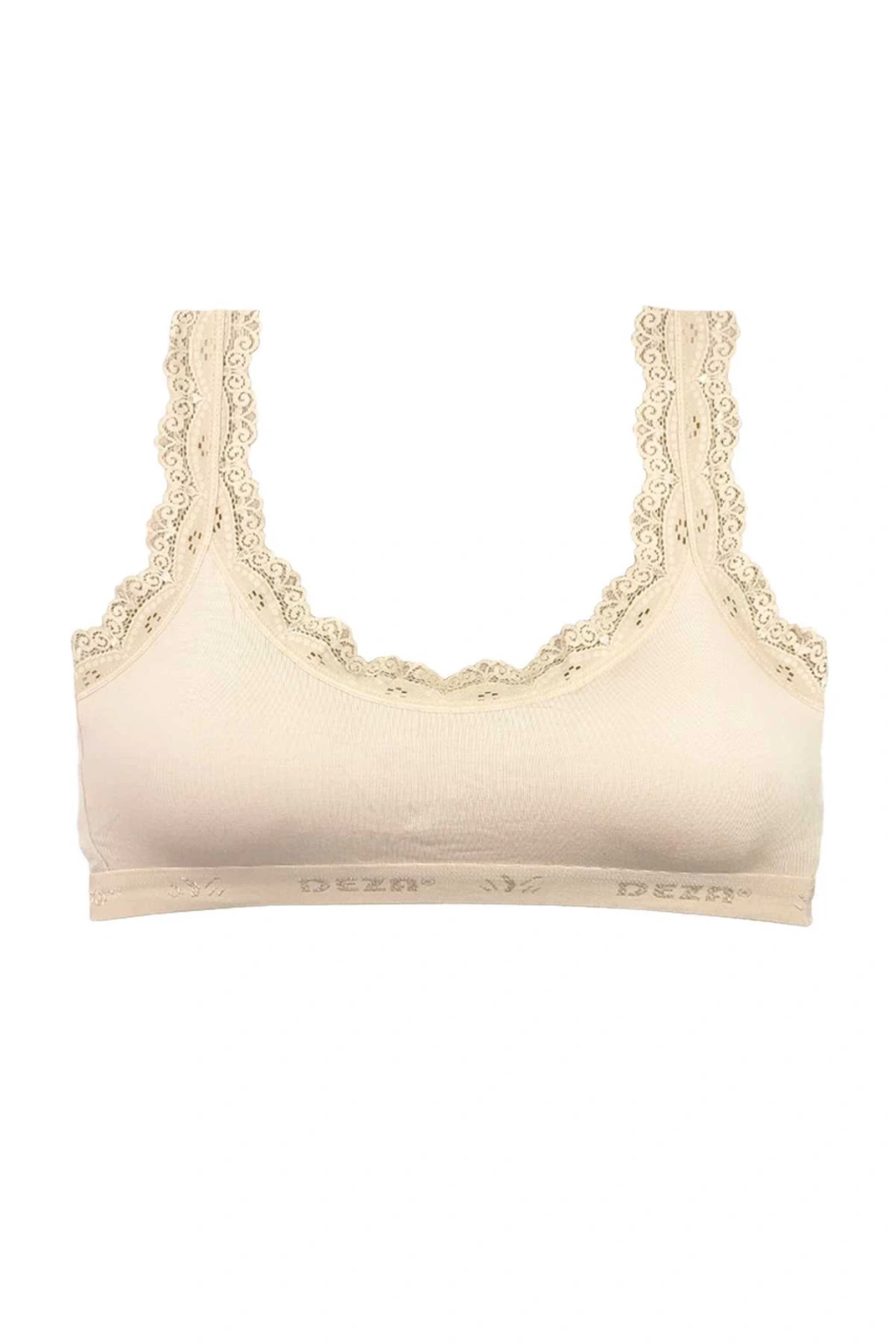 Dantel Nakış İşlemeli Pedli Bambu Kadın Büstiyer Krem