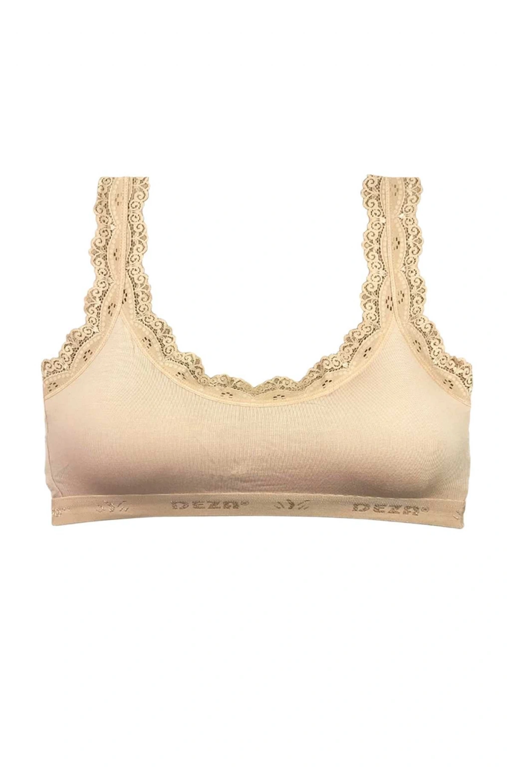 Dantel Nakış İşlemeli Pedli Bambu Kadın Büstiyer Ten