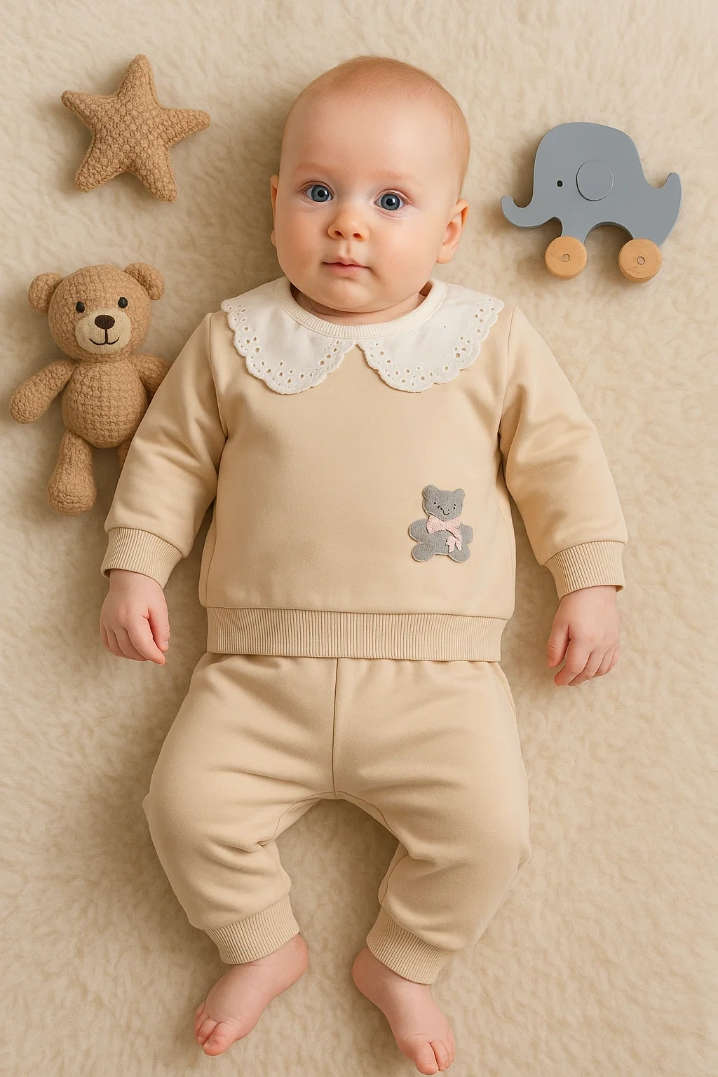 Dantel Yakalı Pamuklu 2'li Kız Bebek Takımı