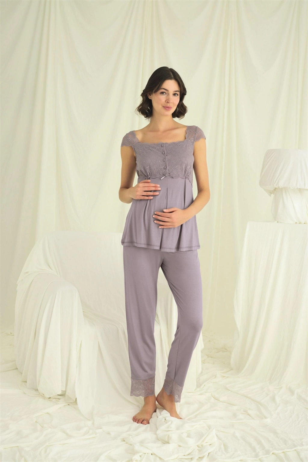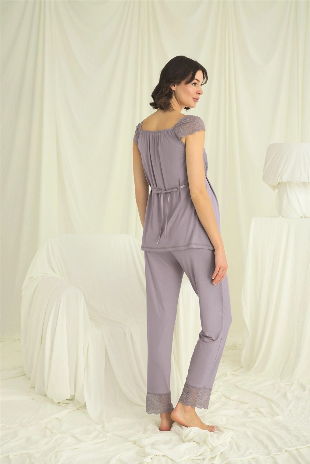 Dantelli Hamile Lohusa 3lü Pijama Takımı