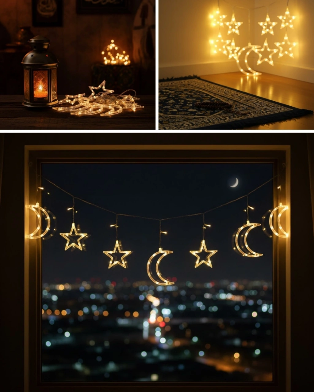 Bu ay ve yıldız LED perde ışık, Ramazan ayının ruhuna uygun sıcak ve romantik bir atmosfer oluşturur. Pilli tasarımı sayesinde kablo karmaşası olmadan pratik kullanım sağlar. Hafif yapısı ile duvara, perdeye veya cama kolayca asılabilir. Yanıp sönme modu ile dekorasyonunuza hareket katarken, sabit ışık modu ile sakin bir ortam yaratabilirsiniz. Ev, organizasyon ve özel gün süslemeleri için çok yönlü bir üründür.