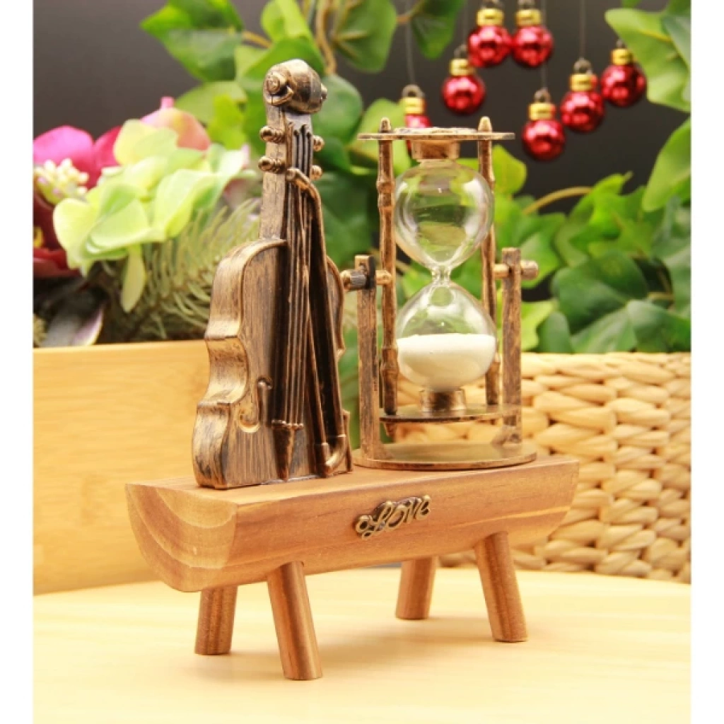 DEKORATİF KEMAN TASARIMLI KUM SAATİÜrün ÖzellikleriDekoratif keman tasarımlı kum saati, estetik ve şık görünümüyle yaşam alanlarınıza nostaljik bir hava katar. Ahşap detayları ve keman figürüyle birleşen kum saati tasarımı, hem dekoratif bir obje hem de işlevsel bir zaman ölçer olarak kullanılabilir. 18x15 cm boyutunda olan bu ürün, 27 saniyelik kum süresine sahiptir. Masaüstünde, kitaplıkta veya ofis dekorasyonunda zarif bir aksesuar olarak tercih edilebilir.Paket İçeriği1 adet Dekoratif Keman Tasarımlı Kum Saati