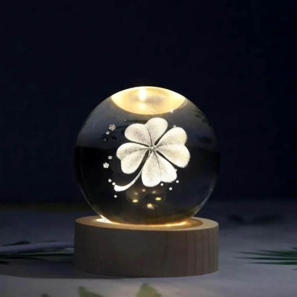 Dekoratif YONCA Tasarımlı Ahşap altlıklı Işıklı Cam Küre Büyük Boy Cam:8cm Ahşap:2cm