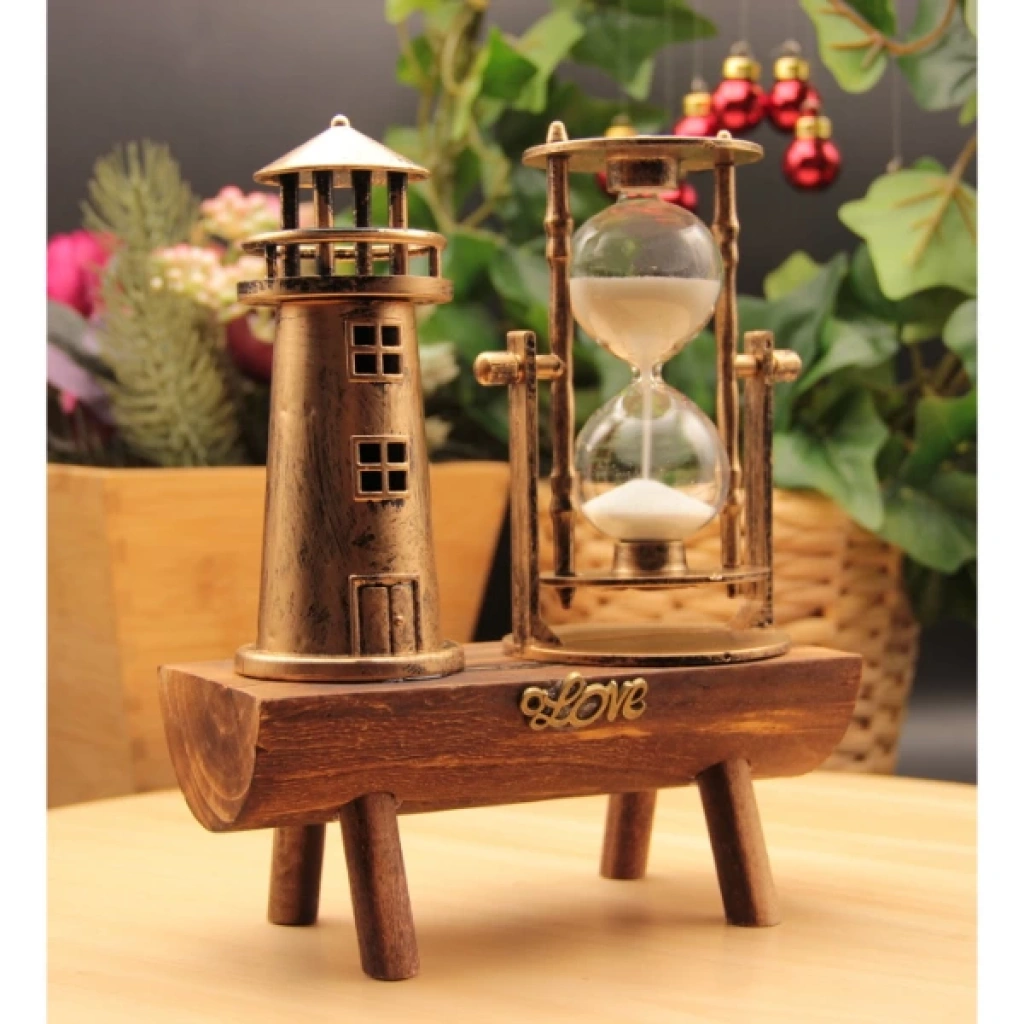 DENİZ FENERİ BİBLOLU KUM SAATİÜrün ÖzellikleriDeniz feneri biblolu kum saati, deniz temalı nostaljik tasarımıyla dikkat çeken dekoratif bir masa süsüdür. Metalik altın renkteki deniz feneri detayı ve şeffaf cam kum saati, ahşap görünümlü platform üzerinde bir araya getirilerek estetik bir bütünlük oluşturur. Üzerindeki “Love” yazısı ürüne romantik bir dokunuş katarken, retro görünümü sayesinde her ortamda şık bir atmosfer yaratır. Ofis, ev veya hediye alternatifi olarak değerlendirilebilir. El işçiliği hissi veren yüzeyi ve zarif detayları ile koleksiyonluk bir parçadır.Paket İçeriği1 Adet Deniz Feneri Biblolu Kum Saati