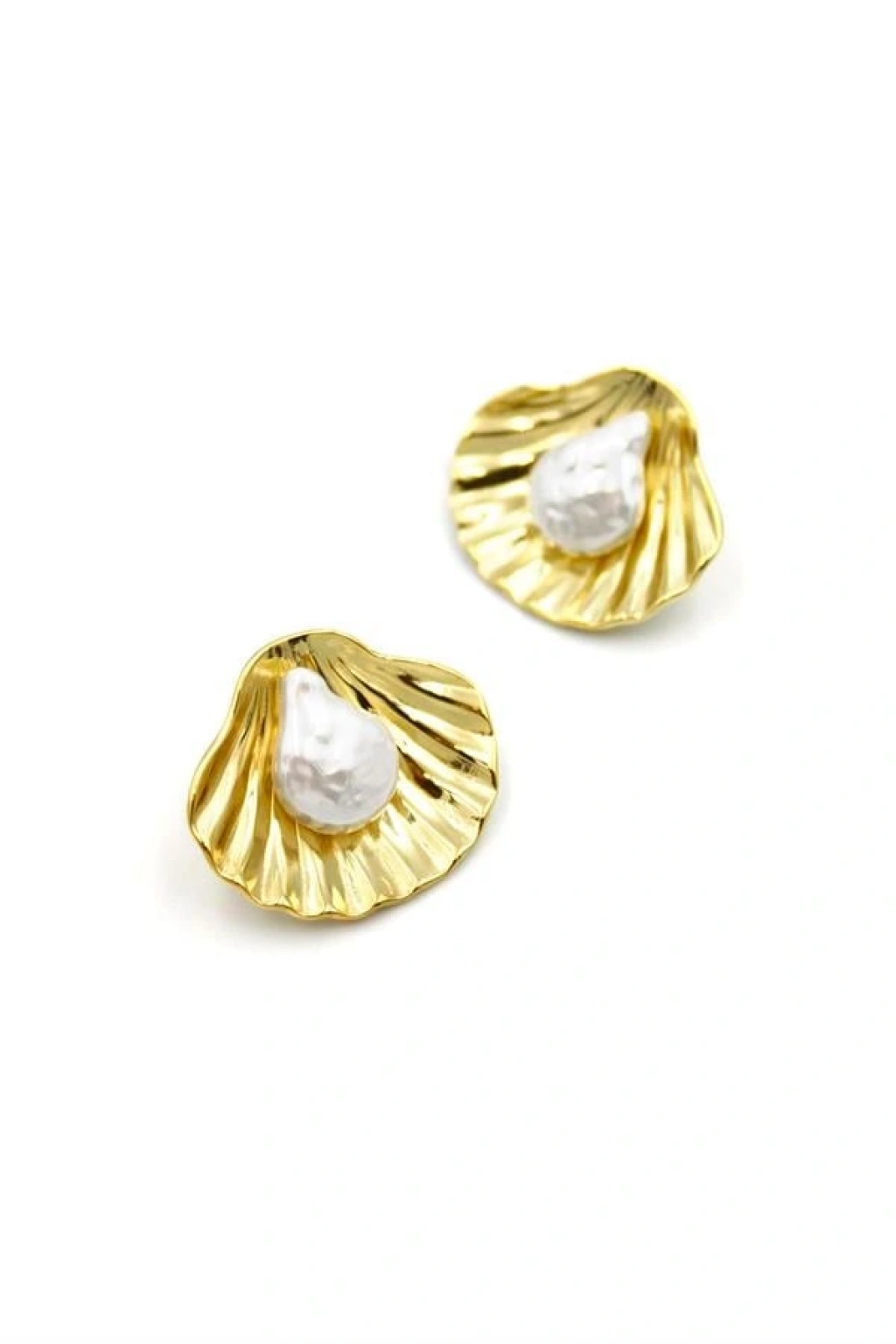 Büyük Baget Taşlı Çelik Küpe - Altın