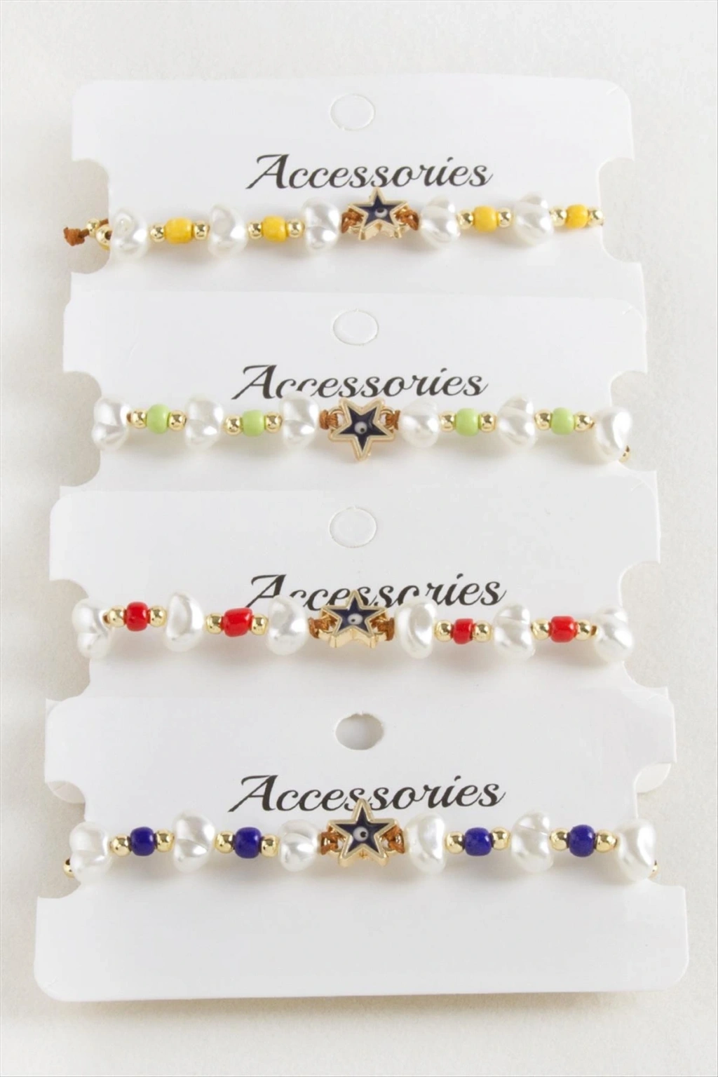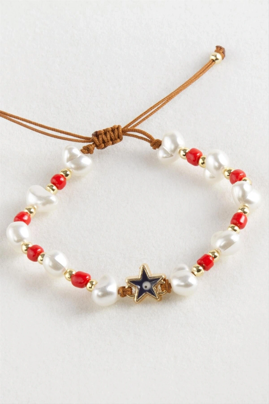 Deniz Yıldızı Boncuk İnci Makrome İp Bileklik