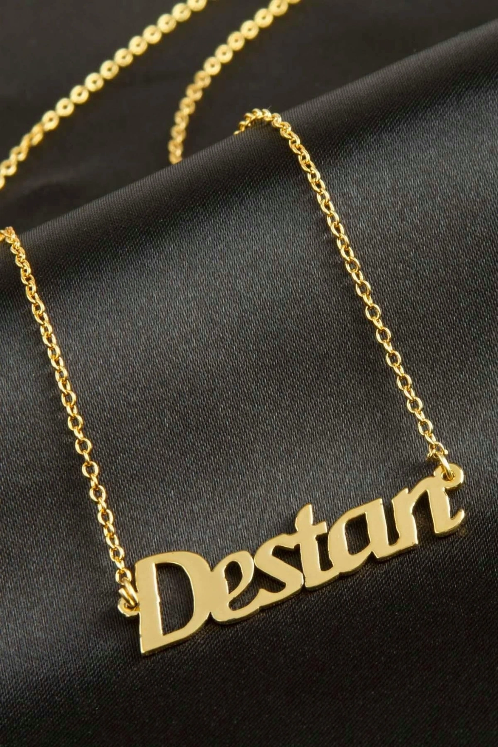 Destan isimli kolye. İsimli kolye pirinç madeninden ve altın kaplamalıdır. Kişiye özel üretilmektedir.Yazdırmak istediğiniz ismi bize mesaj olarak iletmeniz gerekmektedir. Kullanıma bağlı olarak uzun süre kullanıma uygundur. Ürün malzemesi 1.sınıf kalitededir. Ürün ve zinciri sarı renktedir. Ürün zincir boyu 45 cm ve ürün üzerindeki isimler yaklaşık 3 cmdir. İsim boyları ürün ismine göre degişiklik göstermektedir.