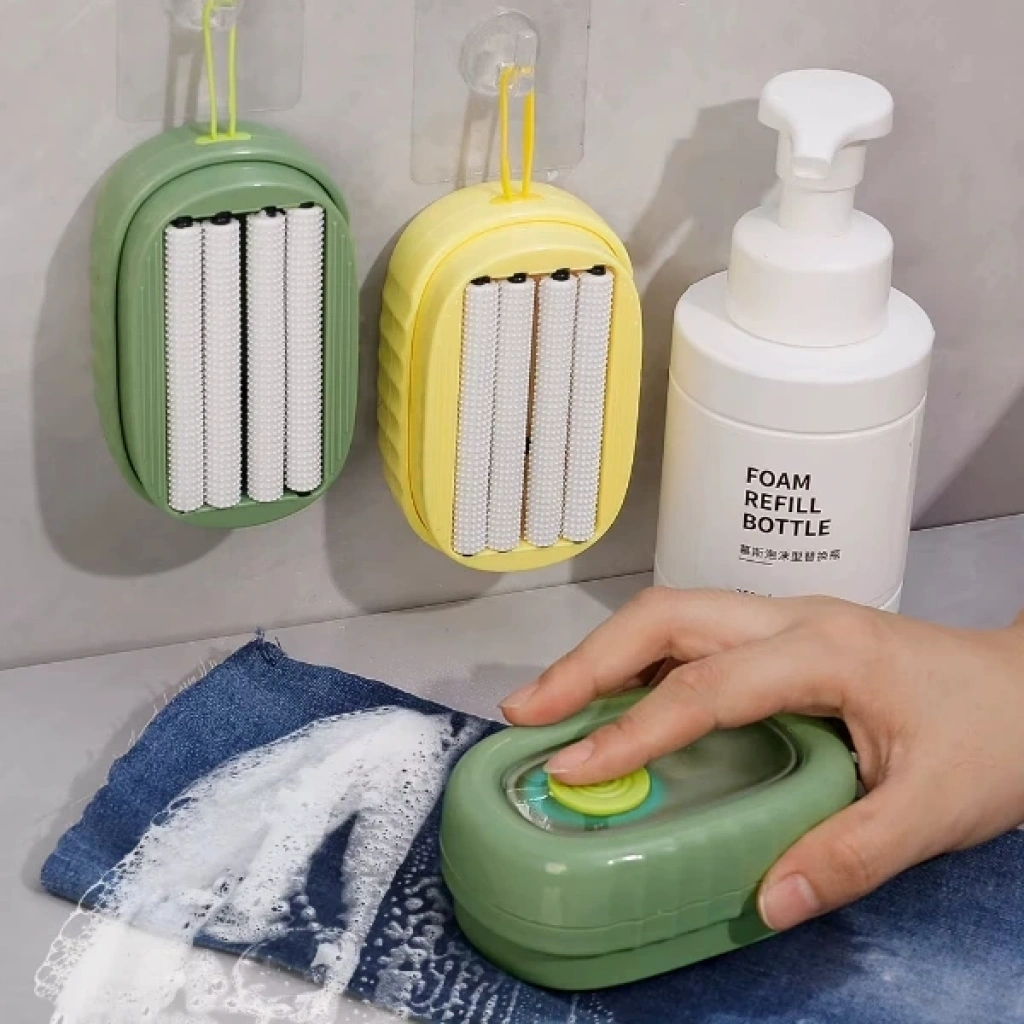 DETERJAN HAZNELİ ÇAMAŞIR GIRGIRIÜrün ÖzellikleriDeterjan hazneli çamaşır gırgırı, temizlik işlerinizi daha pratik ve verimli hale getiren bir üründür. Üst kısmında yer alan hazneye sıvı deterjan doldurulur ve tek tuşla deterjan dışarı verilir, bu da kullanımı son derece kolaylaştırır. Çoklu döner fırçalar, kirleri etkili bir şekilde çıkararak ovma işlemini kolaylaştırır. Kompakt yapısı sayesinde elinize rahatça oturur ve uzun süreli kullanımlarda bile rahatlık sağlar. Kullanılmadığında, dikey şekilde duvara asılabilir, böylece banyo, mutfak veya çamaşır odasında yer kaplamaz. Sert plastik gövdesi, dayanıklılık ve uzun ömürlü kullanım sunar.Paket İçeriği1 Adet Deterjan Hazneli Çamaşır Gırgırı