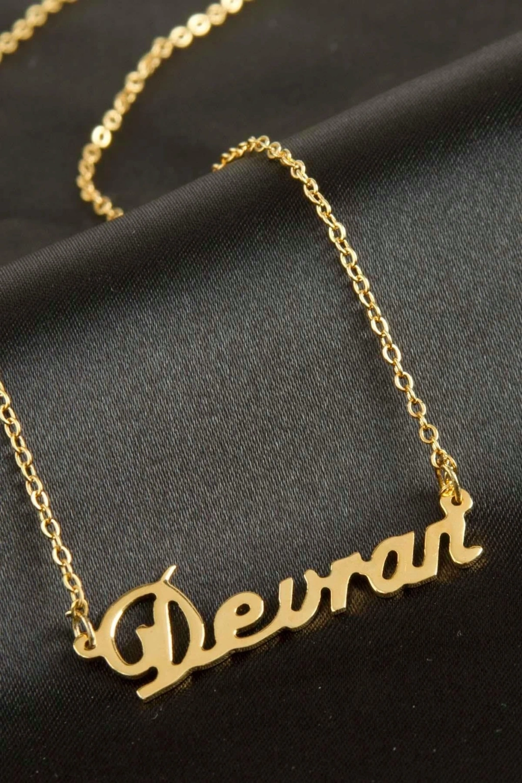 Devran isimli kolye. İsimli kolye pirinç madeninden ve altın kaplamalıdır. Kişiye özel üretilmektedir.Yazdırmak istediğiniz ismi bize mesaj olarak iletmeniz gerekmektedir. Kullanıma bağlı olarak uzun süre kullanıma uygundur. Ürün malzemesi 1.sınıf kalitededir. Ürün ve zinciri sarı renktedir. Ürün zincir boyu 45 cm ve ürün üzerindeki isimler yaklaşık 3 cmdir. İsim boyları ürün ismine göre degişiklik göstermektedir.
