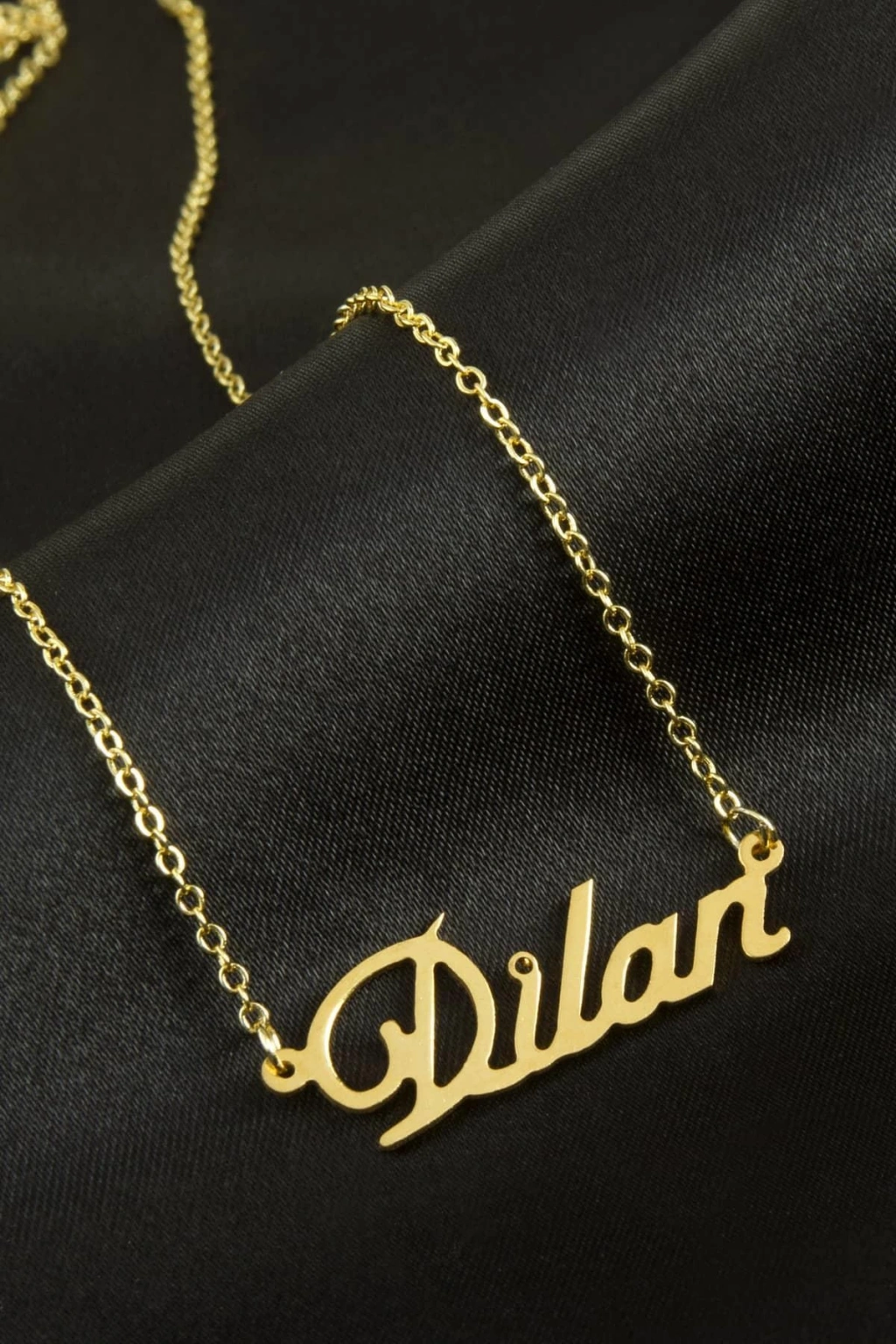 Dilan isimli kolye. İsimli kolye pirinç madeninden ve altın kaplamalıdır. Kişiye özel üretilmektedir.Yazdırmak istediğiniz ismi bize mesaj olarak iletmeniz gerekmektedir. Kullanıma bağlı olarak uzun süre kullanıma uygundur. Ürün malzemesi 1.sınıf kalitededir. Ürün ve zinciri sarı renktedir. Ürün zincir boyu 45 cm ve ürün üzerindeki isimler yaklaşık 3 cmdir. İsim boyları ürün ismine göre degişiklik göstermektedir.