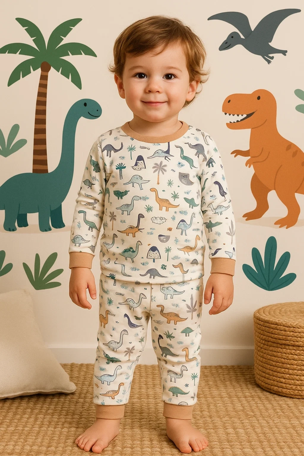Dinazor Desenli Erkek Bebek Eşofman Takımı %100 Pamuk