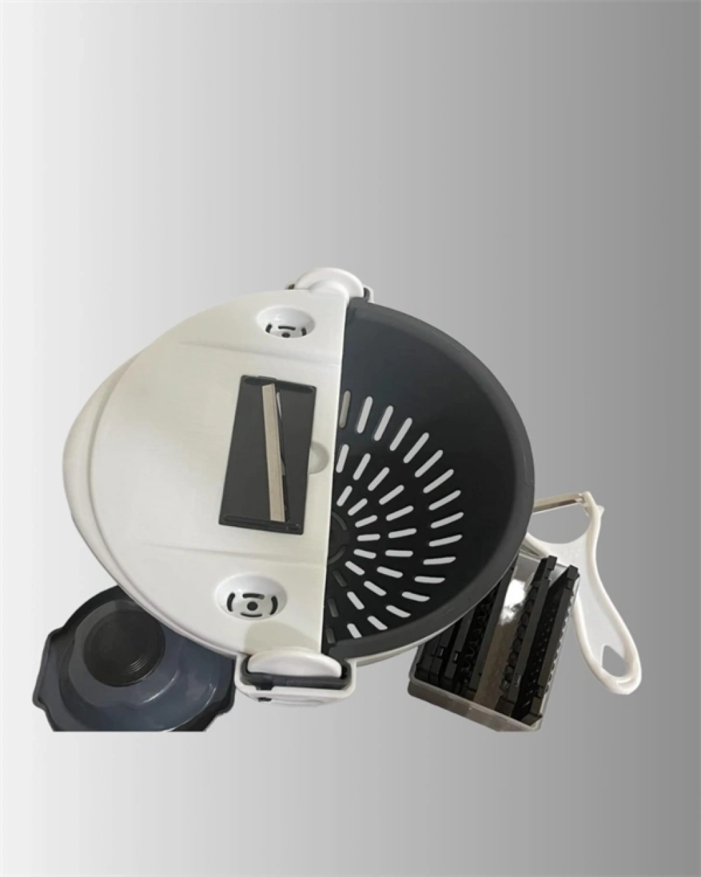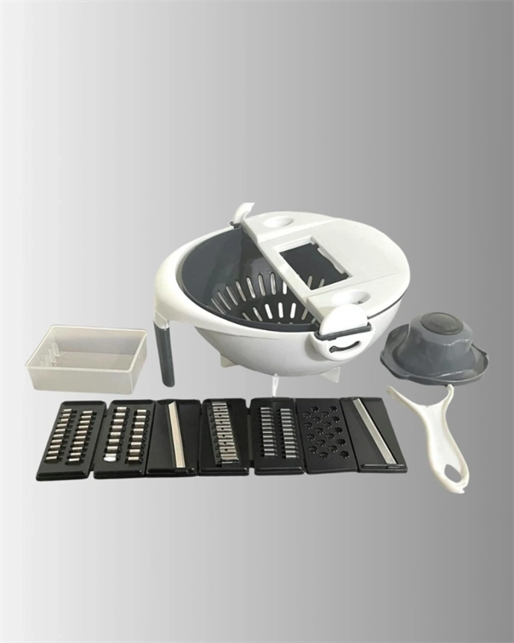 Bu pratik mutfak atı, yalnızca sebze ve meyve değil, aynı zamanda peynir gibi diğer gıdaların da hızlı ve eşit şekilde doğranmasını sağlar. Döner mekanizma ile çalışan değiştirilebilir bıçakları, çeşitli kalınlıklarda kesim yapma imkanı verir. Hazneye entegre süzgeç bölmesi, doğradığınız ürünlerin yıkanıp süzülmesini kolaylaştırır. El koruyuculu yapısı, bıçaklarla teması en aza indirerek daha güvenli bir kullanım sunar. Gündelik yemek hazırlıklarında hız ve pratiklik sağlayan bu ürün, aynı zamanda kompakt tasarımıyla mutfağınızda yer tasarrufu da sağlar.