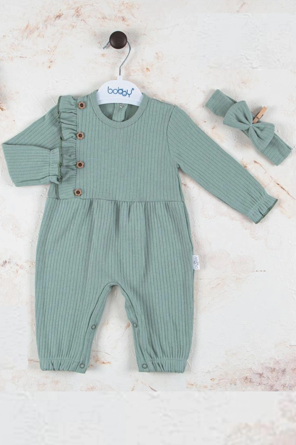 Düğme Detaylı Bandanalı % 100 Pamuk Kız Bebek Tulumu