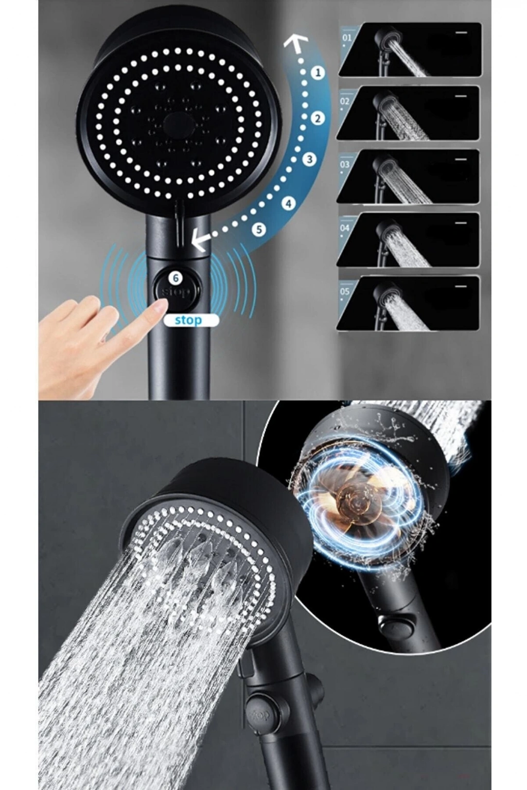 Duş Başlığı Pervaneli Serinletici Tasarım 5 Modlu (4887)
