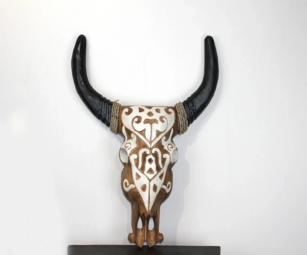 DUVARA ASMALI BUFALO KAFASI Ürün ÖzellikleriBu dekoratif bufalo kafası, şık tasarımı ve geleneksel motifleriyle ev dekorasyonuna zarif bir dokunuş katar. Yüksek kaliteli malzemelerden üretilmiş olan kafanın boyutları 75x45 cm olup, duvara asılabilir ve dikkat çekici bir görünüm sağlar. Siyah boyalı büyük boy boynuzlar ve beyaz-sarı desenli yüzey, ürünü estetik açıdan etkileyici kılar.Mekânınıza rustik, bohem veya doğal bir hava katmak için mükemmel bir seçenektir.Paket İçeriği1 Adet Duvara Asmalı Bufalo Kafası
