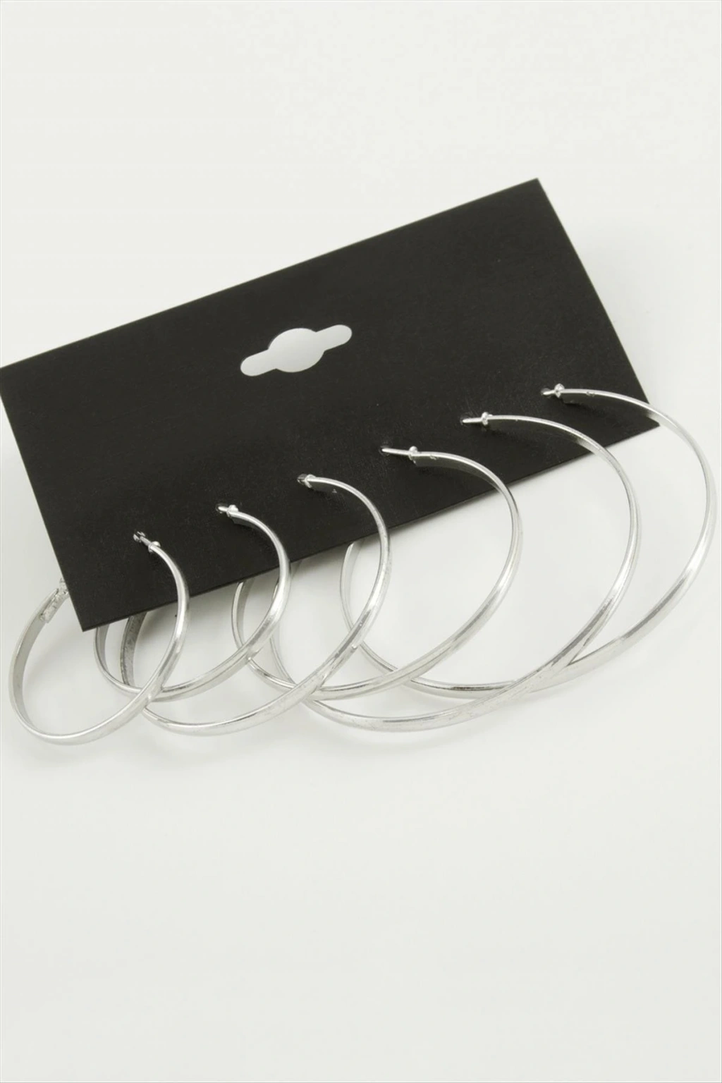 Küpe; Ürün malzemesi metal ve kartlıdır. 1 kartta 6 adet halka küpe olarak satılmaktadır. Halka çapı 3-4-5 cmdir.
