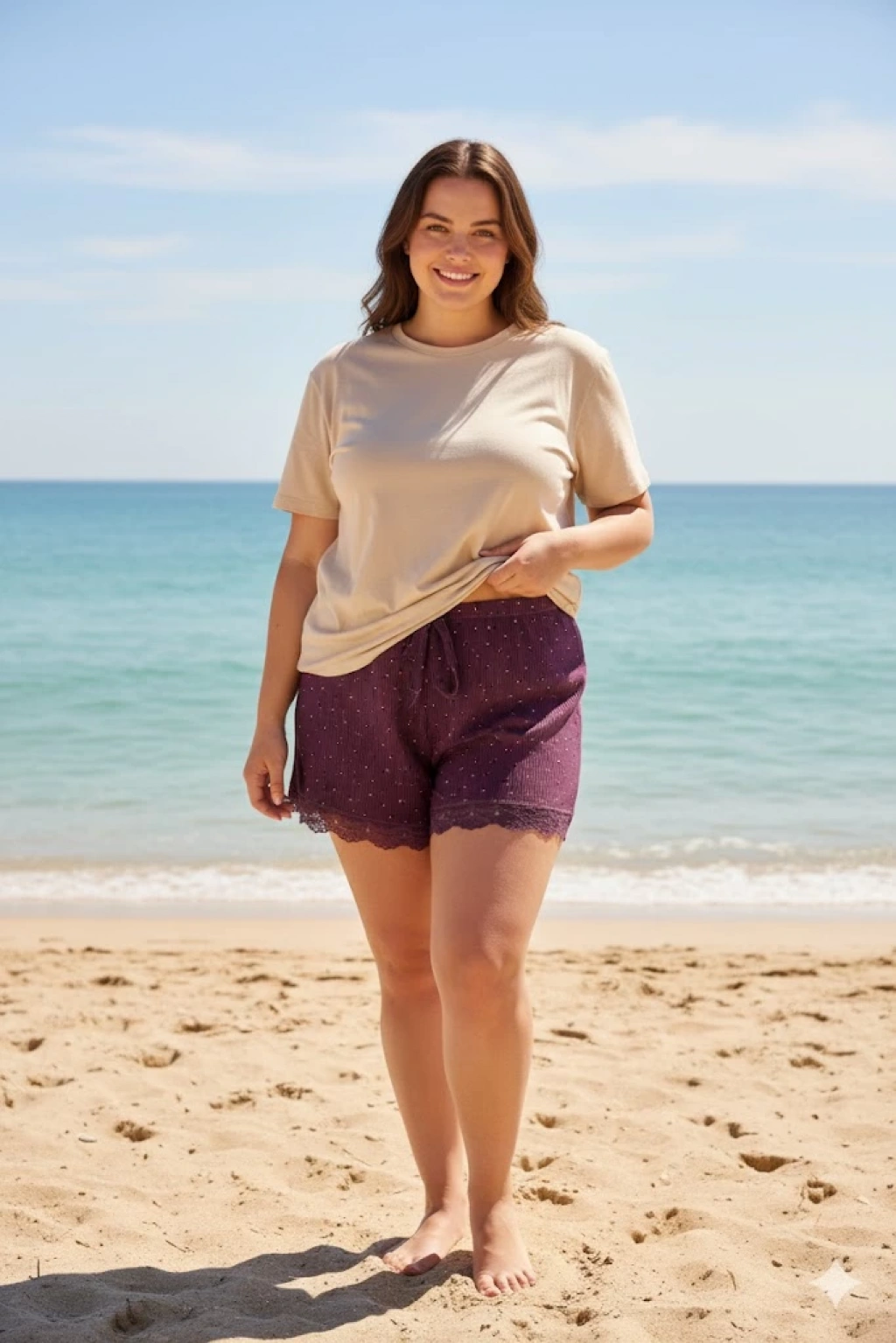 Düz Renk Mini Çiçek Desenli Penye Kadın Ev Şortu Bacak Dantel Detaylı Ev Giyim Gül Kurusu<br />Ev giyim pijama dantel detaylı kadın şort <br />penye şort <br />kadın ev giyim<br />