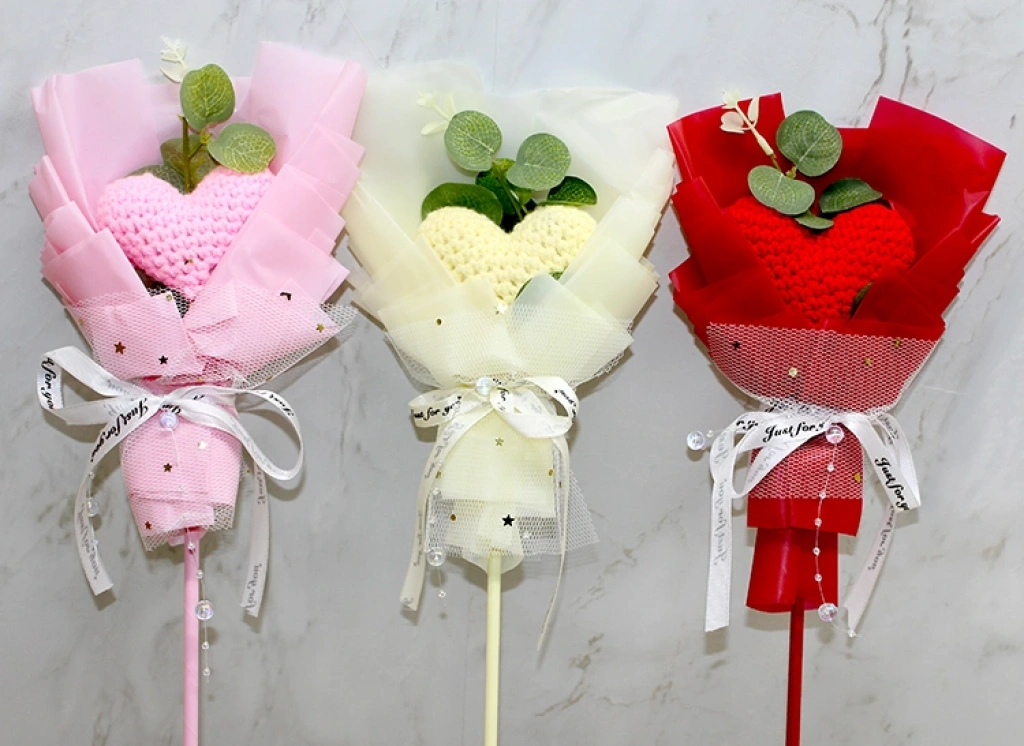 El Örgüsü Kalp Çiçeği Buketi