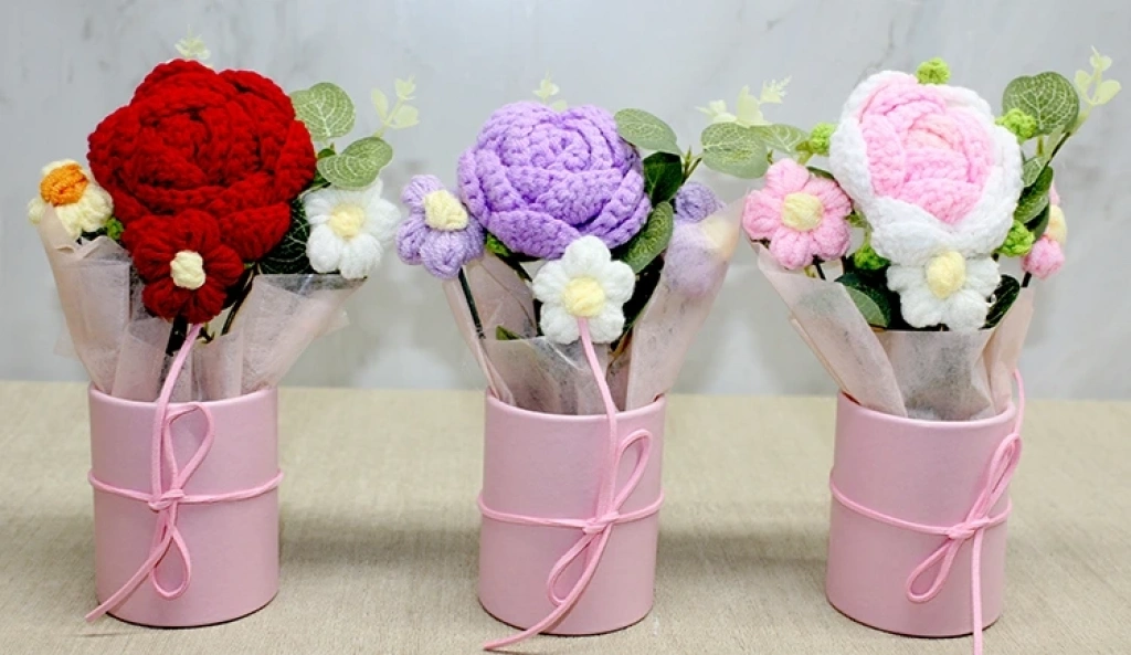 EL ÖRGÜSÜ SAKSIDA GÜL BUKETİÜrün ÖzellikleriEl Örgüsü Saksıda Gül Buketi, el emeği ile hazırlanmış dekoratif ve zarif bir masaüstü çiçek aranjmanıdır. 18x7 cm boyutundaki kompakt yapısı sayesinde çalışma masalarında, komodinlerde, vitrinlerde ve hediye sunumlarında şık bir tamamlayıcı olarak kullanılabilir. Örgü gül ve küçük çiçek detayları ürüne sıcak, yumuşak ve doğal bir görünüm kazandırırken, pembe tonlardaki dekoratif saksı ve kurdele detayı ürünü hediye edilmeye hazır sevimli bir aranjmana dönüştürür. El işçiliğiyle üretildiği için her bir buket kendine özgüdür ve el yapımı dokusu sayesinde bulunduğu ortama estetik bir hava katar. Renk seçimi yapılamaz; görseldeki renklerden biri olarak gönderilir. Hem dekoratif amaçlı kullanım hem de anlamlı bir hediye seçeneği olarak idealdir.Paket İçeriği1 adet El Örgüsü Saksıda Gül Buketi