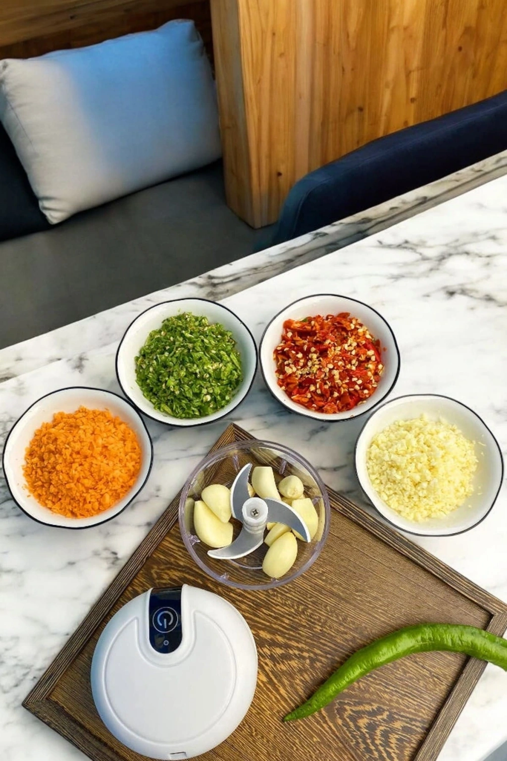 USB Şarjlı Pratik ve Portatif Doğrayıcı Rondo Blender Türkiye'nin en yenilikçi mutfak yardımcısı, USB Mini Blender Rondo ile tanışın! Bu şık ve kompakt tasarımlı mini blender, modern yaşamın vazgeçilmezleri arasında yer alıyor.Pratikliği ve fonksiyonelliği ile dikkat çeken Rondo, sağlıklı yaşamın kapılarını sizin için aralıyor.USB Şarj Özelliği: Priz arayışına son! USB şarj özelliği ile her yerde ve her zaman kullanıma hazır.Ofiste, spor salonunda veya seyahatlerinizde enerjinizi yüksek tutun.Kullanıcı Dostu Tasarım: Kolay temizlenen bıçakları, taşınabilir yapısı ve kullanıcı dostu kontrol paneli ile Rondo, her kullanıcı için ideal bir deneyim sunar.Sarımsak, soğan ve baharat gibi ürünlerinizi kolayca doğramanıza olanak sağlar.250 mldir.
