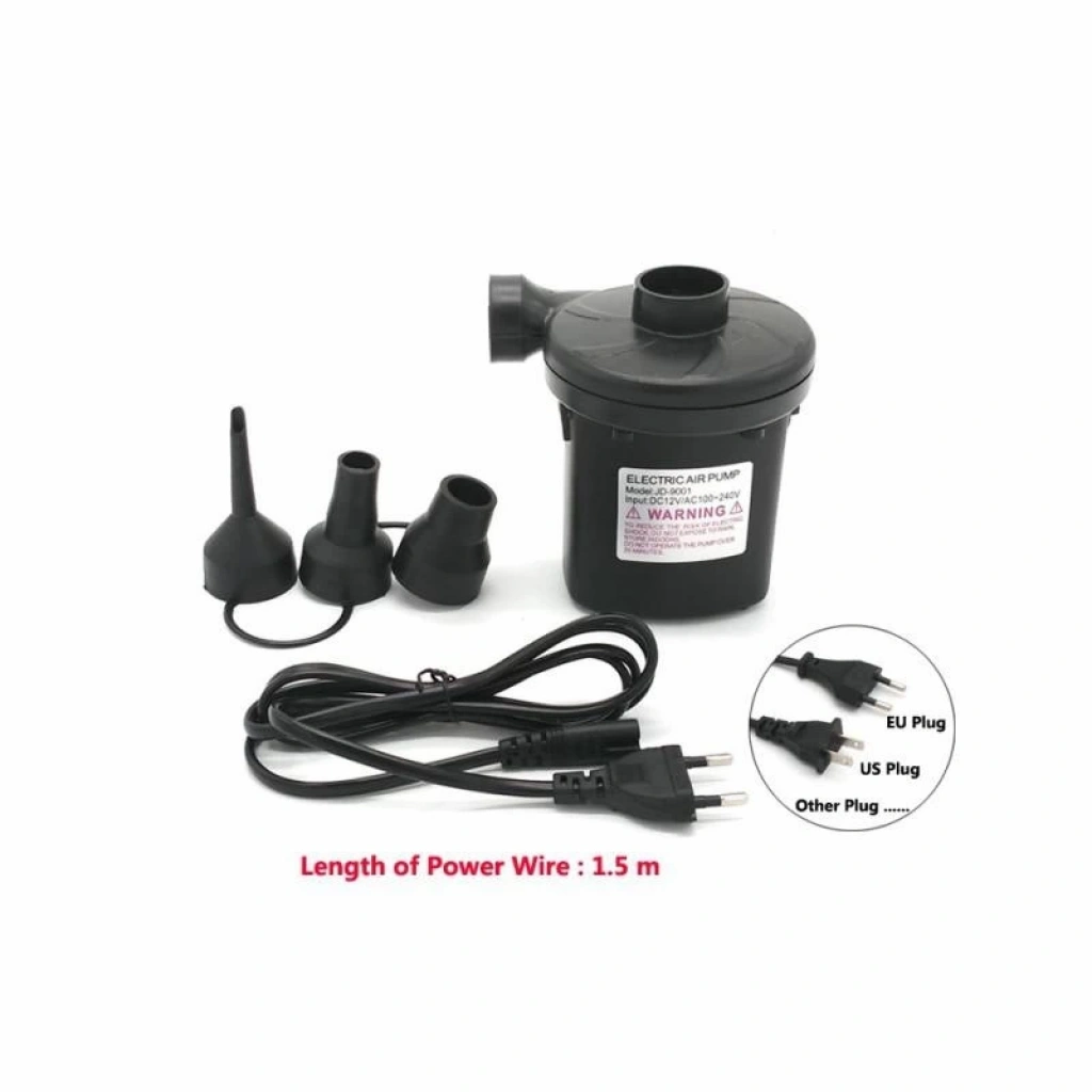 İçeride ve dışarıda kullanım 220-240V AC priz ile uyumludur. Hem şişirmek hem de söndürmek için kullanılır. Tüm siboplarla uyumlu 3 başlık Şişirmek için iğne ucu gerektiren ürünlerde kullanılmaz. Renk: Siyah Frekans: 50Hz Yüksek kalite Kullanım alanları: Şişme yatak, bisiklet lastiği, araba lastiği, vakumlu poşet çekme vb..