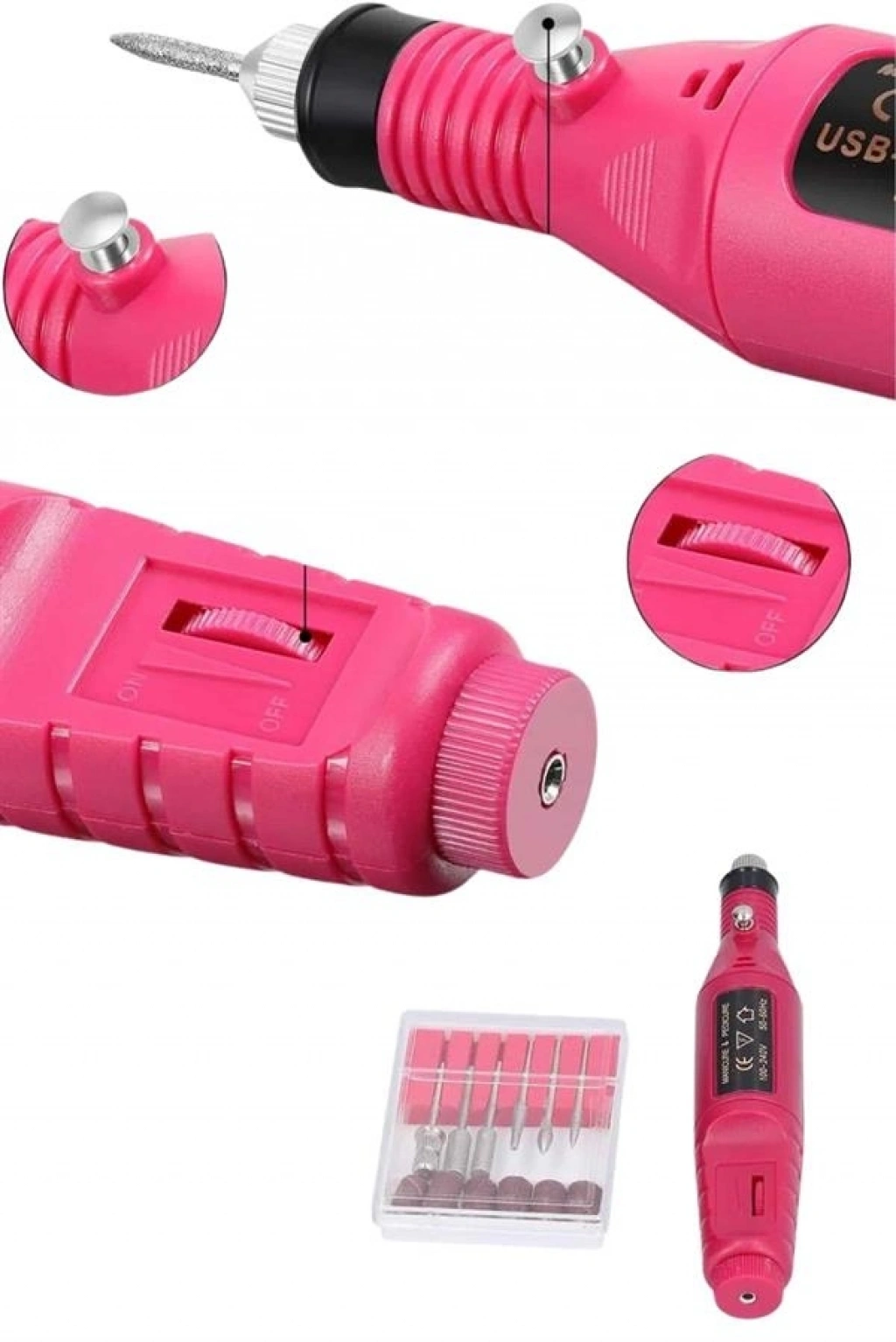 Elektrikli Manikür-Pedikür-Törpü MakinesiTırnaklarınızın kuaförden çıkmış gibi görünmesi hiç bu kadar kolay olmamıştı! Evde profesyonel bir manikür ve pedikür deneyimi için ideal olan bu set, mükemmel tırnak bakımını sadece birkaç adımda gerçekleştirmenize yardımcı olur. Kendinize veya sevdiğiniz birine hediye edebileceğiniz harika bir ürün!Kolay Kullanım ve Konforlu TasarımElektrikli manikür ve pedikür makinesi, hafif ve rahat tutuş sağlamak için kalem şeklinde tasarlanmıştır. Ergonomik yapısı sayesinde uzun süreli kullanımda bile ellerinizi yormaz. Düşük gürültü seviyesi ve titreşimsiz çalışma özelliği ile konforlu bir deneyim sunar.