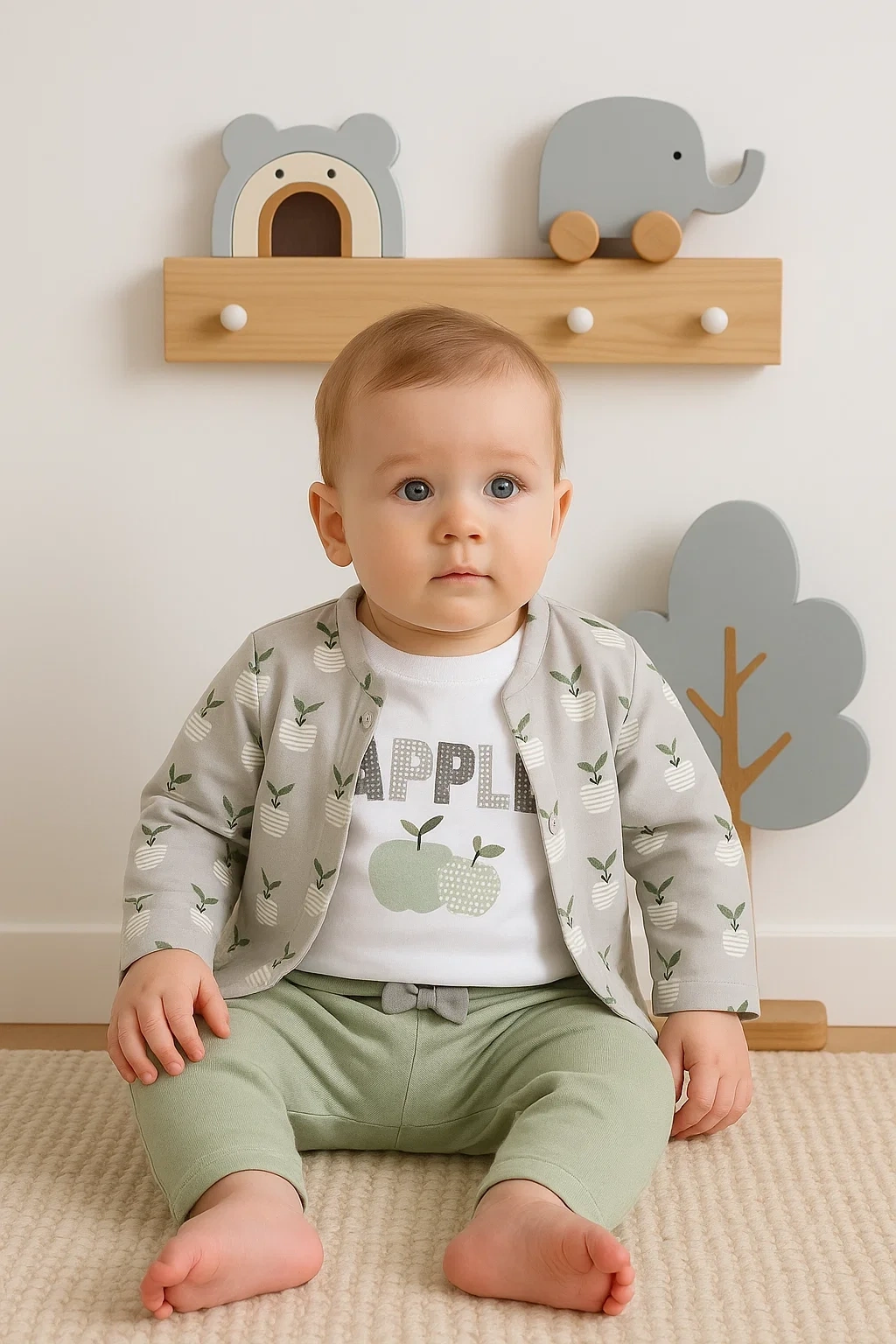 Elma Desenli Ceketli 3'lü Kız Bebek Takımı