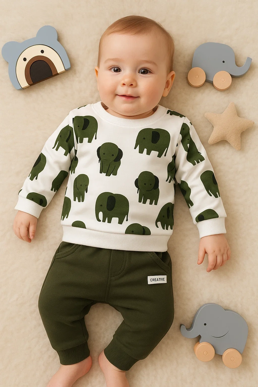 Fil Desenli 2'li % 100 Pamuk Erkek Bebek Takımı