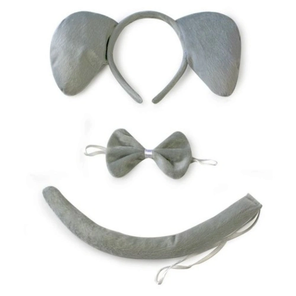Fil Kostümü Aksesuar Seti 3 lü - Taç Papyon Kuyruk