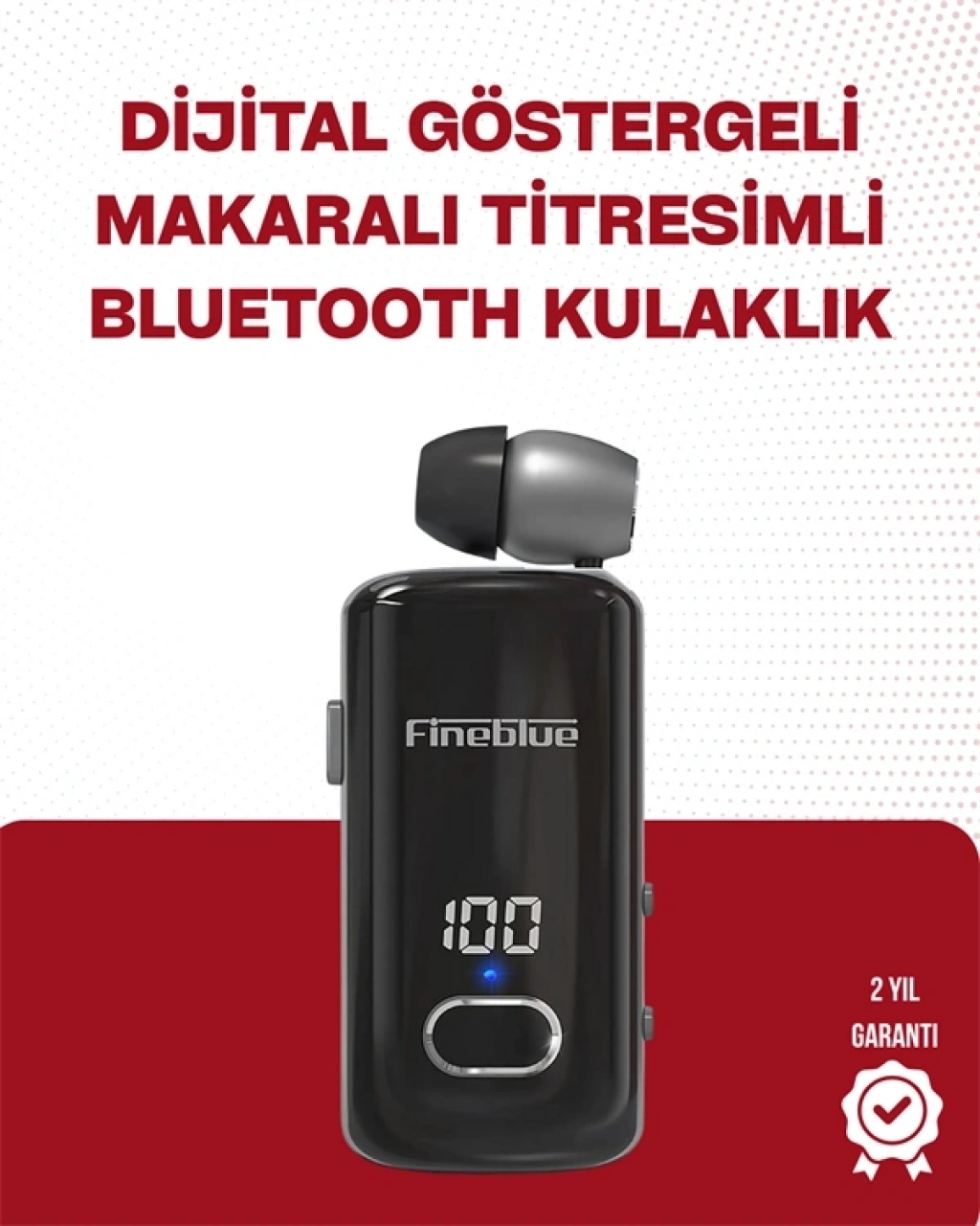 • Fineblue F580 Bluetooth Kulaklık – Klipsli, Dijital Göstergeli, Su Geçirmez, 12 Saat Pil Ömürlü