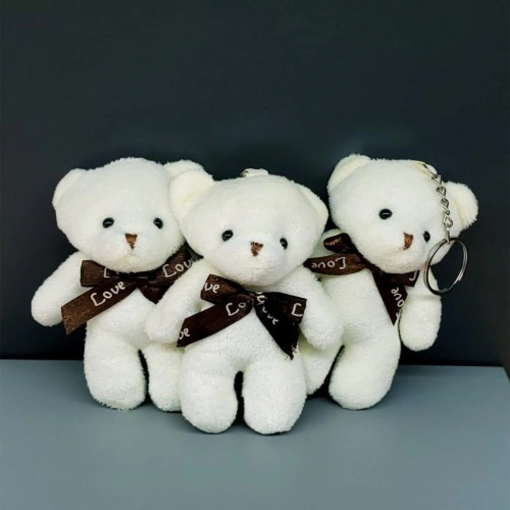Fiyonklu Krem Renk Ayıcık Anahtarlık Fiyonklu krem renk peluş ayıcık anahtarlık, şık ve sevimli tasarımıyla anahtarlarınızı bir arada tutmanın eğlenceli yolunu sunuyor. Nişan, nikah, düğün ve diğer özel organizasyonlarda dekoratif süs olarak da kullanabileceğiniz bu peluş anahtarlık, hediye setlerinize şıklık katıyor.Ürün Özellikleri:Kaliteli peluş malzemeden üretilmiştir.Paket içerisinde tek renk çıkmaktadır.Paket içerisinde 12 adet bulunmaktadır.Metal askı sayesinde anahtarlarınızı kolayca asabilirsiniz.Şık ve dekoratif tasarım.Organizasyonlarda süsleme ve hediye setlerinde kullanılabilir.Ölçü: 12 cm x 6 cm