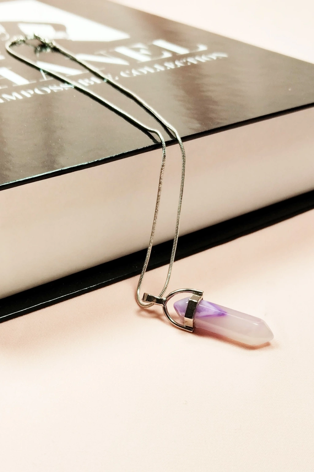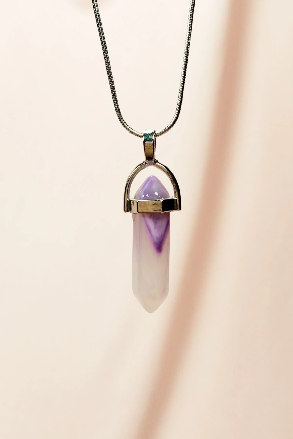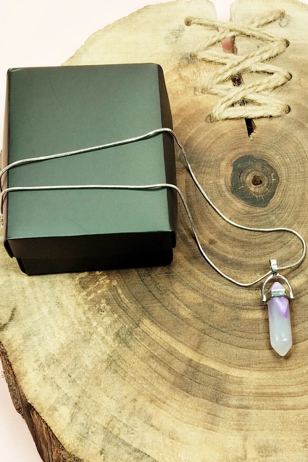 Kalsedon Doğal Taşı Zincirli El Yapımı Kolye Uç: 1,5 cm Zincir: 20 cm Kutulu