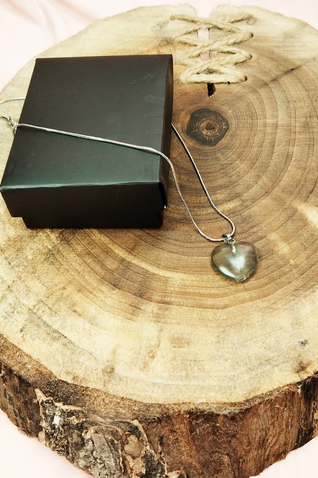 Labradorit Doğal Taşı Zincirli El Yapımı Tasarımlı Kolye Uç: 3,5 cm Zincir: 20 cm Kutulu