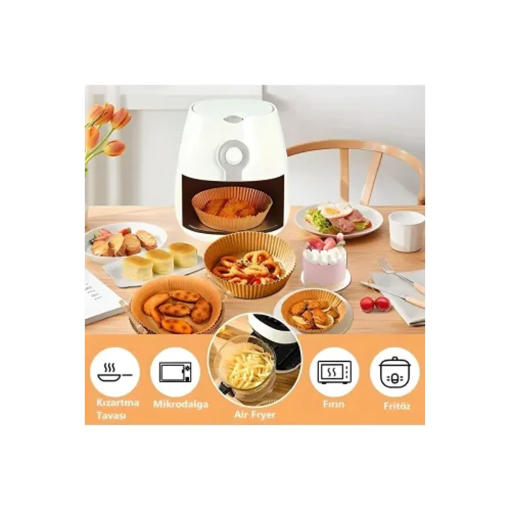 Fritöz Pişirme Kağıdı 50 Adet, hava fritözlerinde kullanabileceğiniz, pratik ve kullanışlı bir üründür. Kağıt, fritözünüzün içini temizlemeyi kolaylaştırır ve yiyeceklerin fritözün içine yapışmasını önler.Ürün özellikleri:50 adet kağıttan oluşur.20 cm x 20 cm ölçülerindedir.Yağ geçirmez ve yapışmaz özelliğe sahiptir.Kolay temizlenir.Kullanım alanları:Hava fritözüÖzellikler:50 adet kağıt, uzun süre kullanım sağlar.20 cm x 20 cm ölçüleri, fritözünüzün iç zeminini tam olarak kaplamak için idealdir.Yağ geçirmez ve yapışmaz özelliği, yiyeceklerin fritözün içine yapışmasını önler ve fritözünüzü temizlemeyi kolaylaştırır.Kolay temizlenebilir yapısı, günlük kullanımda kolaylık sağlar.Fritöz Pişirme Kağıdı 50 Adet, hava fritözünüzü kullanarak lezzetli ve sağlıklı yemekler pişirmek için ideal bir üründür.Fritöz Pişirme Kağıdı 50 Adet: Hava Fritözünüzü Temizlemeyi Kolaylaştırınhava fritözünüzün içini temizlemeyi kolaylaştırmasıyla öne çıkmaktadır.FritözPişirmeKağıdı50 AdetTemizlemeKolaylaştırmak