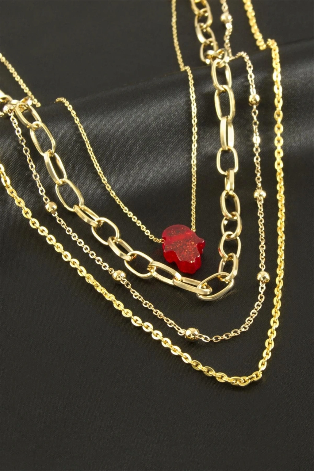 Kolye; Ürün malzemesi plastik ve metaldir. Ürün zincir uzunluğu 60 cmdir. Kartlı ve paketiyle beraber gönderilecektir. 4 zincirden üretilmiştir.