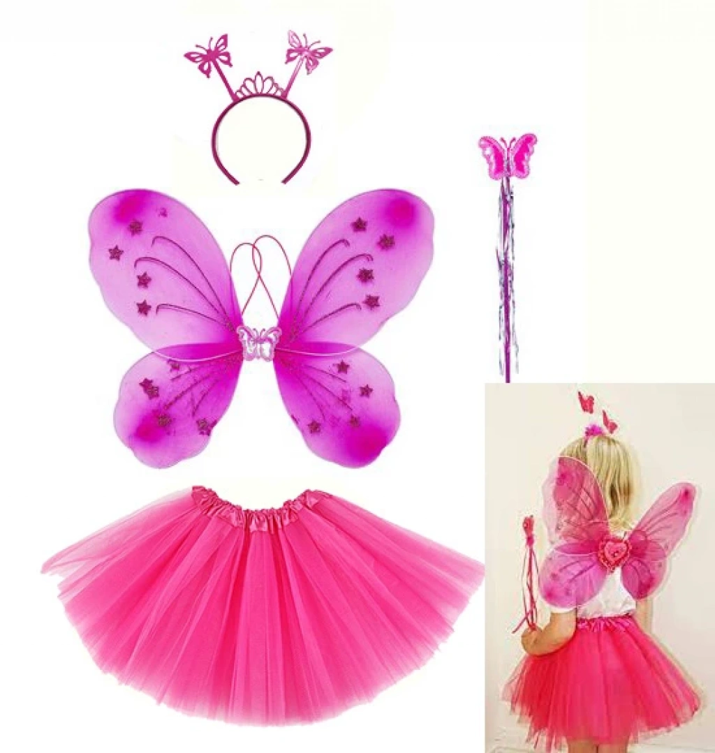Fuşya Kelebek Kostümü - Fuşya Kelebek Kostüm Aksesuar Seti 4 Parça (4887)