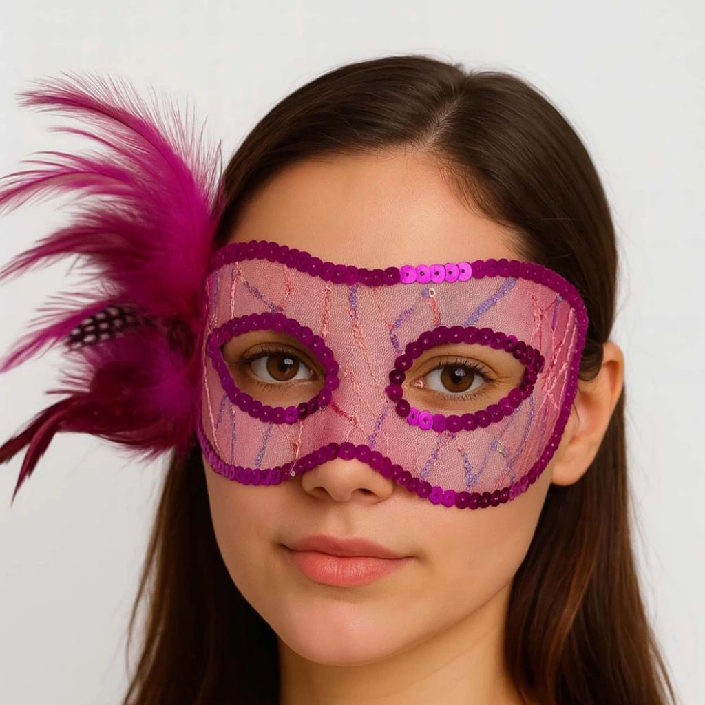 Fuşya Renk Yandan Tüylü Pul Payet İşlemeli Parti Maskesini Neden Seçmelisiniz?